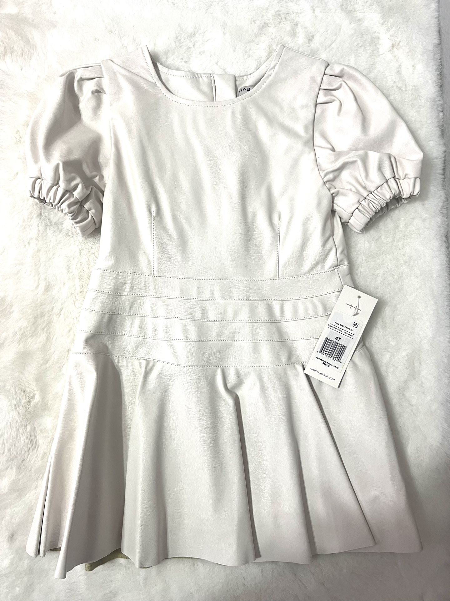 - Beautiful white leather dress - size 4T - brand NEW