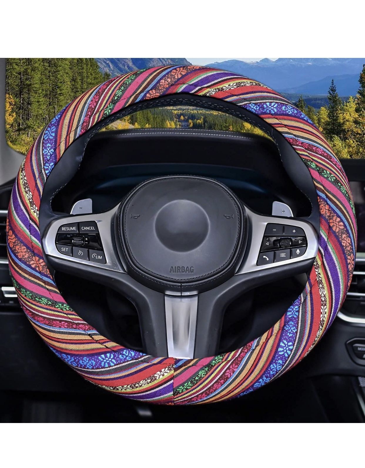 Steering Wheel Cover for Women,15inch Unverisal Cloth Baja Blanket Enthic Steering Wheel Cover with Memory Flom ,Boho Car Accessories