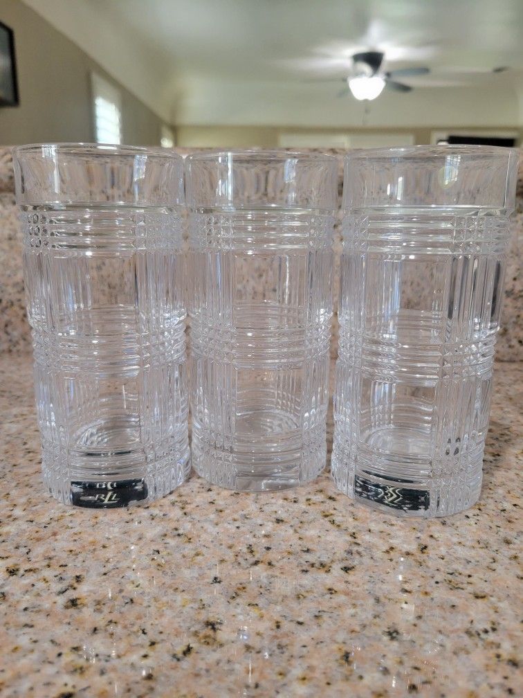 Ralph Lauren Glen Plaid Crystal Highball Heavy Glasses Set of 3