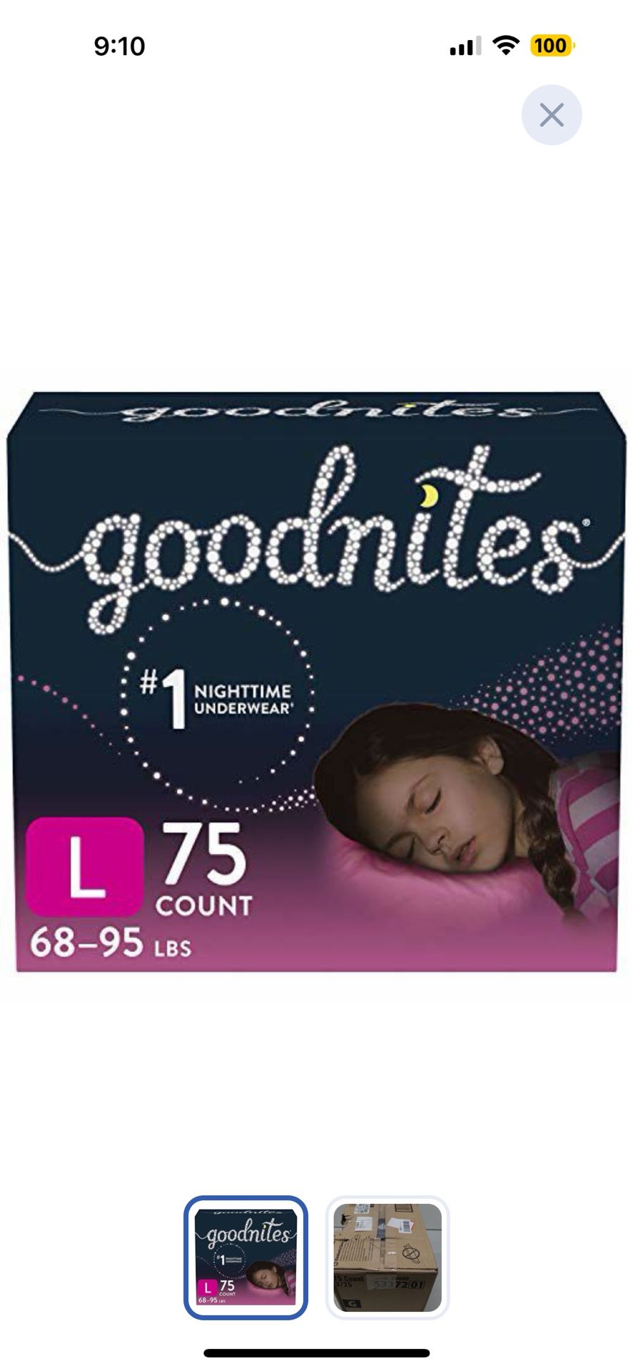 Goodnites Nighttime Bedwetting Underwear, Girls' L (68-95 lb.), 75 Ct New, regular price is $60 the price is $25