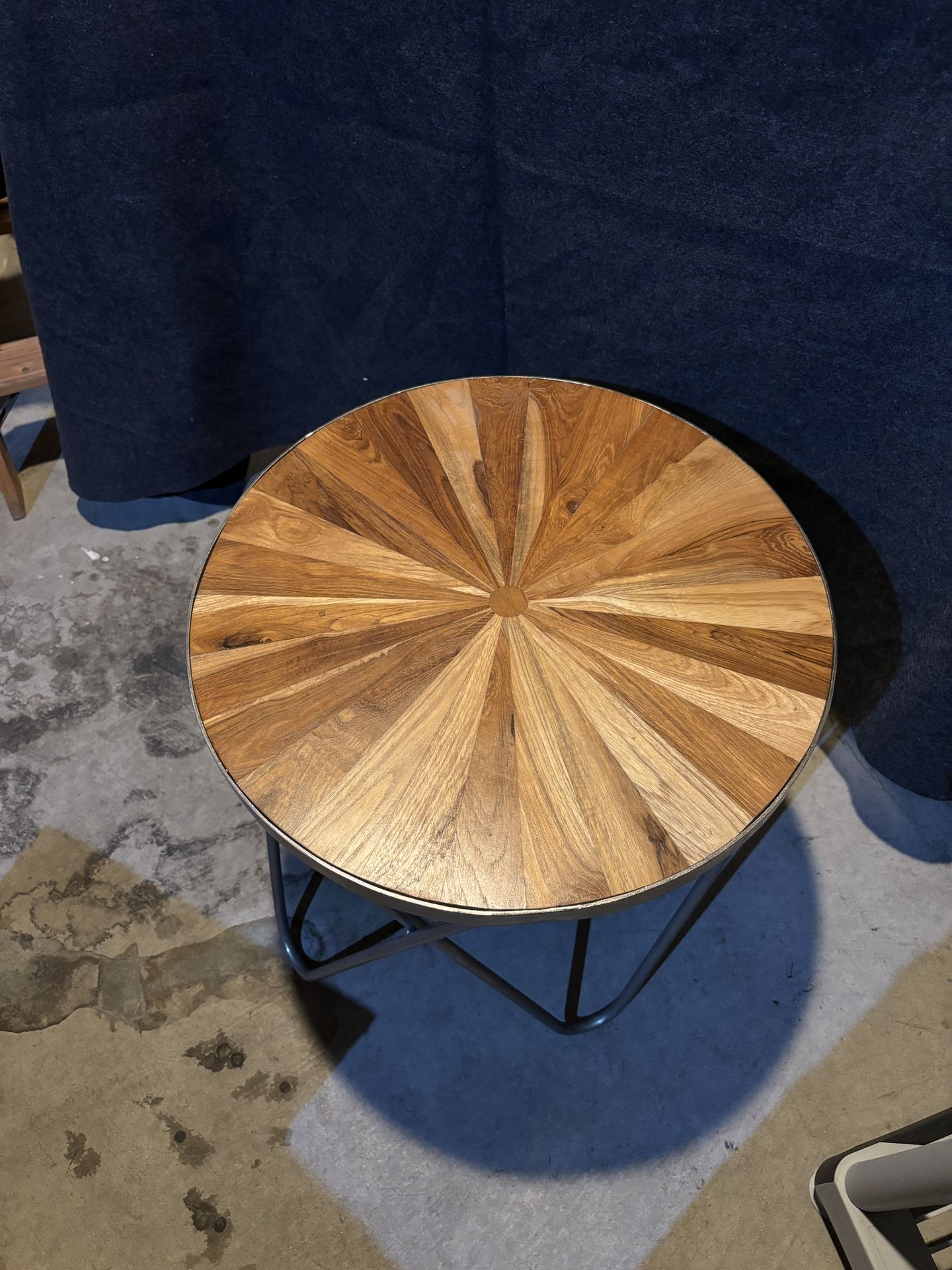 Wood and Metal Round End Table In pretty great condition! Minor marks and wear throughout Discontinued. Must be picked up! 92110 zip code