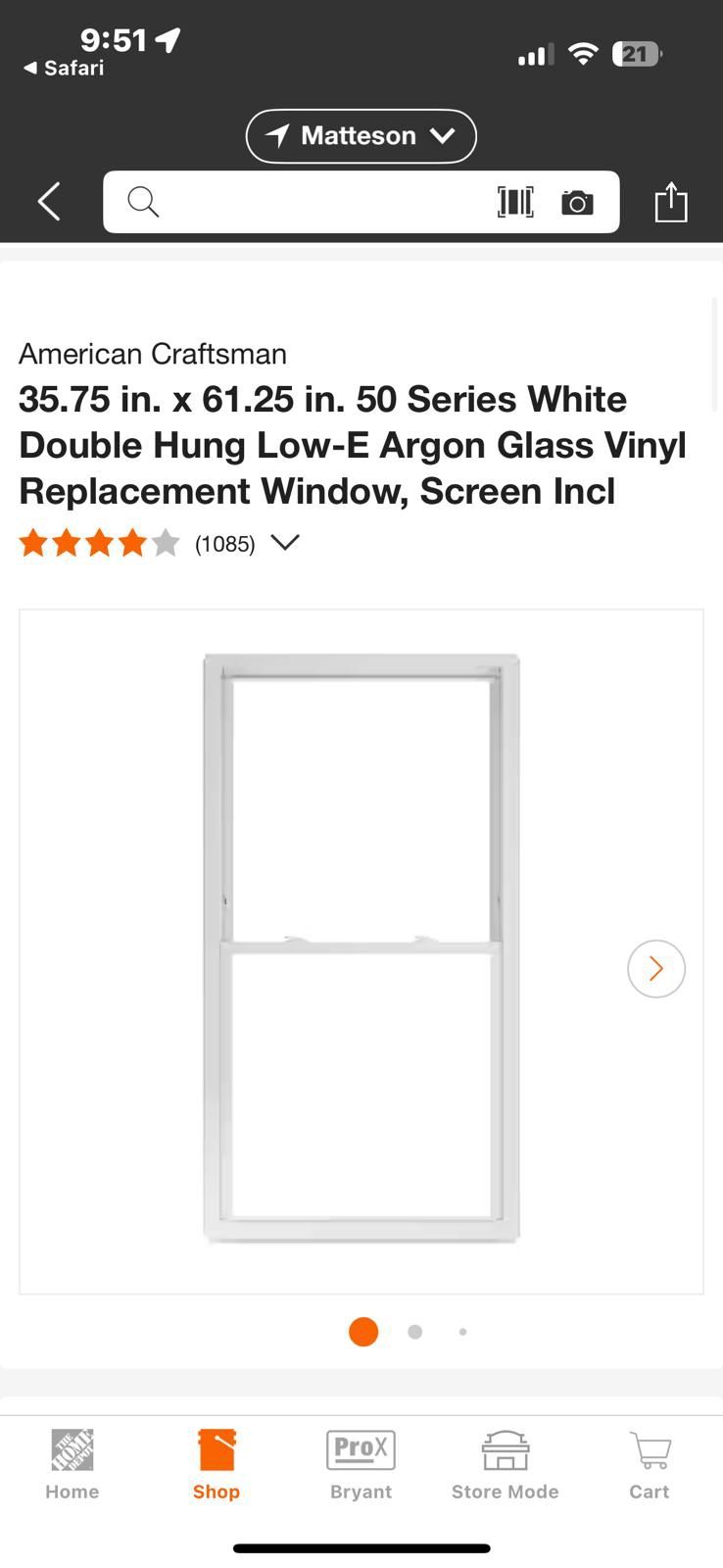 2 White Window Replacements - 35.75 x 61.25