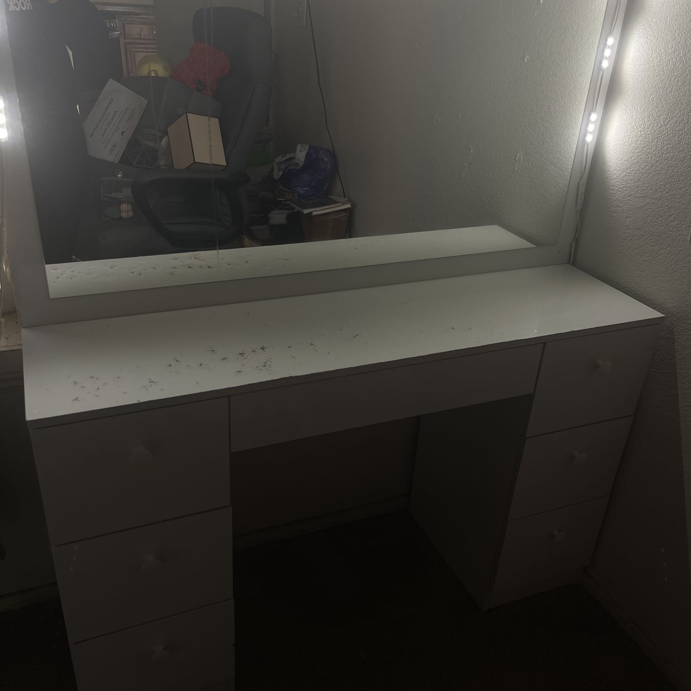 7 drawer white makeup vanity bought from Walmart a few years back for $280 asking for $80. Nothing is wrong with it besides the wood coming up on the front of the vanity. But can be fixed with sanding and paint and would be brand new again. Will offer discount if picked up if not then I will charge extra for delivery. No low ballers pls and thank you. OBO NEED GONE ASAP