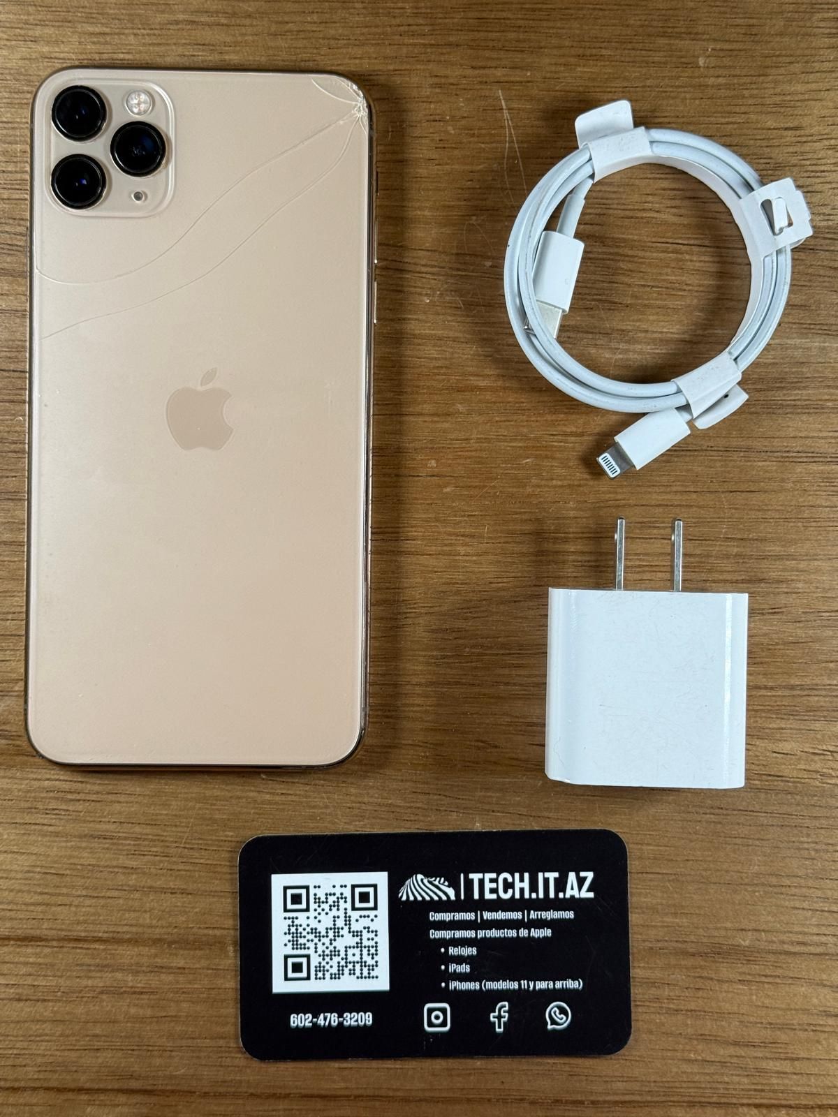 📱 iPhone 11 Pro Max | 256GB | Gold | Unlocked (Any Carrier) Hablo Español | Liberado | Cualquier Compañía ⭐️5 Star Trusted Seller ✅ Clean IMEI ✅ Face ID ✅ True Tone ✅ 14 day warranty 🔋 100% Battery Health *Hair line cracked on the back. Does not affect functionality. 📋Feel free to test your SIM card and phone before buying. 🔌*Add a charger for $10 more. Price is firm 📦Ask us about Wholesale opportunities 📦 Ofrecemos venta por mayoreo 📲 Trade ins are welcome for any carrier status and phone condition! 💰We pay cash for phones 💵 Compramos iPhones *73698