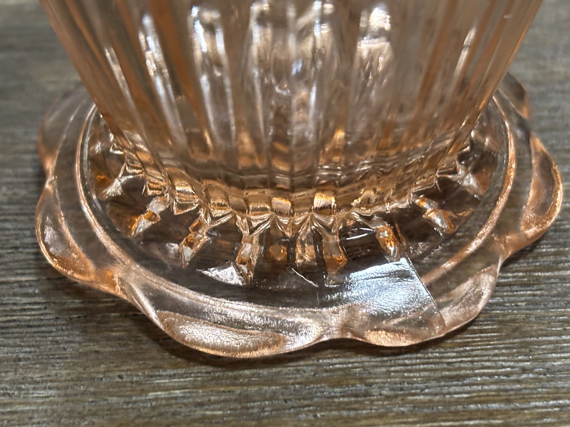 Four, 8 ounce Vintage Depression Glass glasses with Pedestal Bottoms.