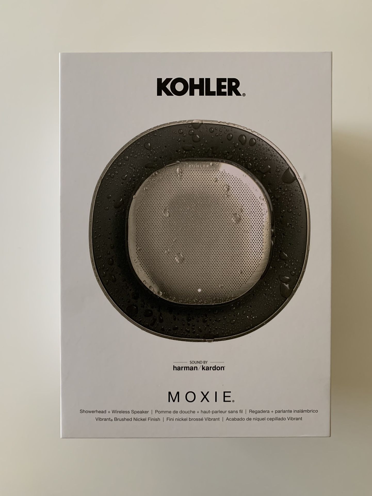 Brand NEW!! In original packaging. Kohler Moxie Showerhead + wireless speaker - brushed nickel finish - rechargeable wireless, waterproof speaker - provides up to 6 hours of runtime - speaker magnetically docks into showerhead Cash accepted. Public meetup in Tempe area. DM for any questions
