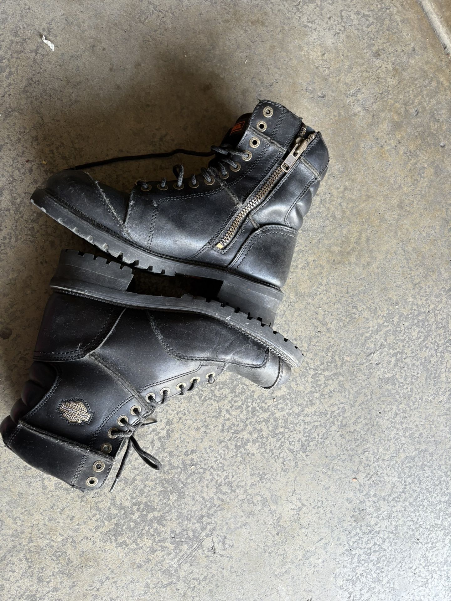 The boots in the image are Harley-Davidson Men's Bill Steel Toe boots.