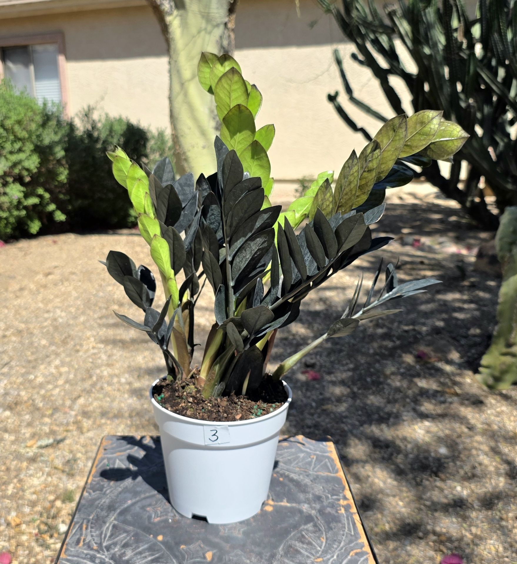 ZZ Black Raven plant in 6 inch pot and 20 inches tall at one point. RARE. Beautiful, big and healthy plant with a lot of new leaves coming. New leaves are green but when they mature then they turn black. Great houseplant that will purify the air in your home, does well in low light and needs little water. Also can be kept outdoors. Come from pest and disease free home. Located in Glendale 67th Avenue and 101. Cash only. No low ballers. Price is firm.