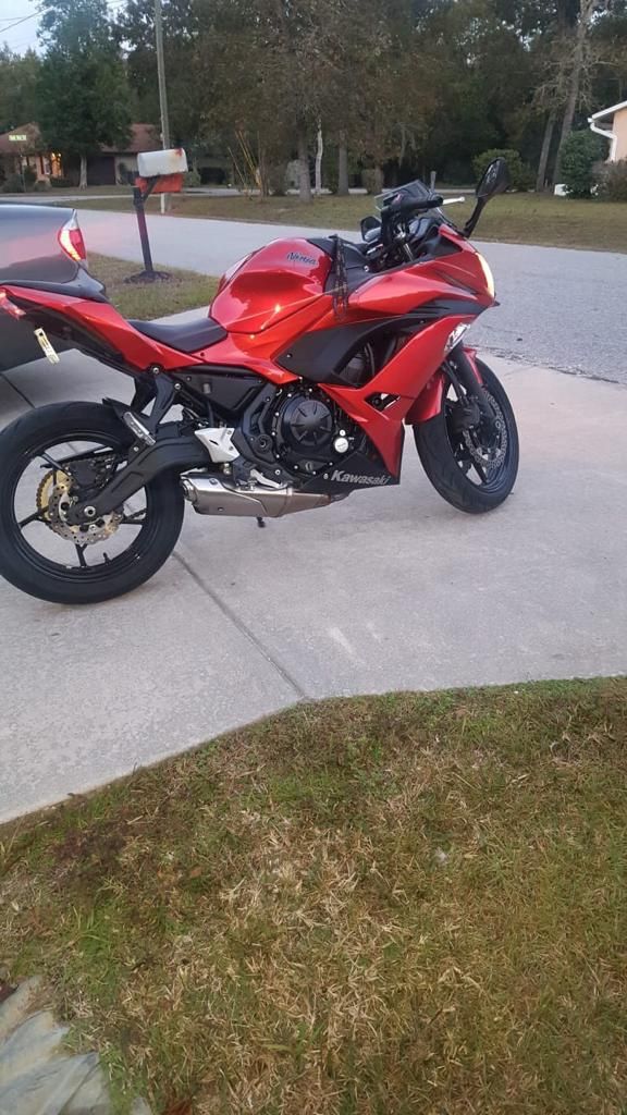 Beautiful Candied Burnt Orange π 650cc smooth light and super fast ride! Garage Kept- never touched the rain BRAND NEW TIRES BRAND NEW OIL 10/10 Condition 2017- only driven a couple of times Only has 1000mi Title on hand π π π