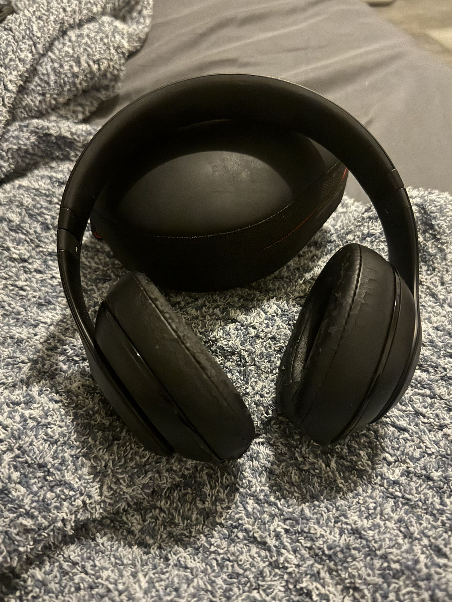 Black Beats Solo headphones (with charger) leather wearing on both ears