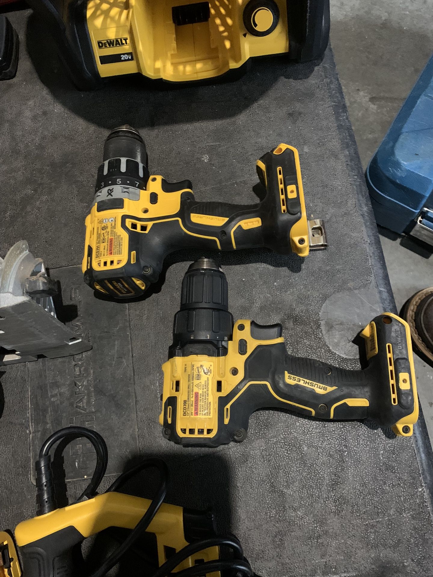 All sorts of DeWalt power tools, some brushless also battery operated portable fan and plenty of batteries
