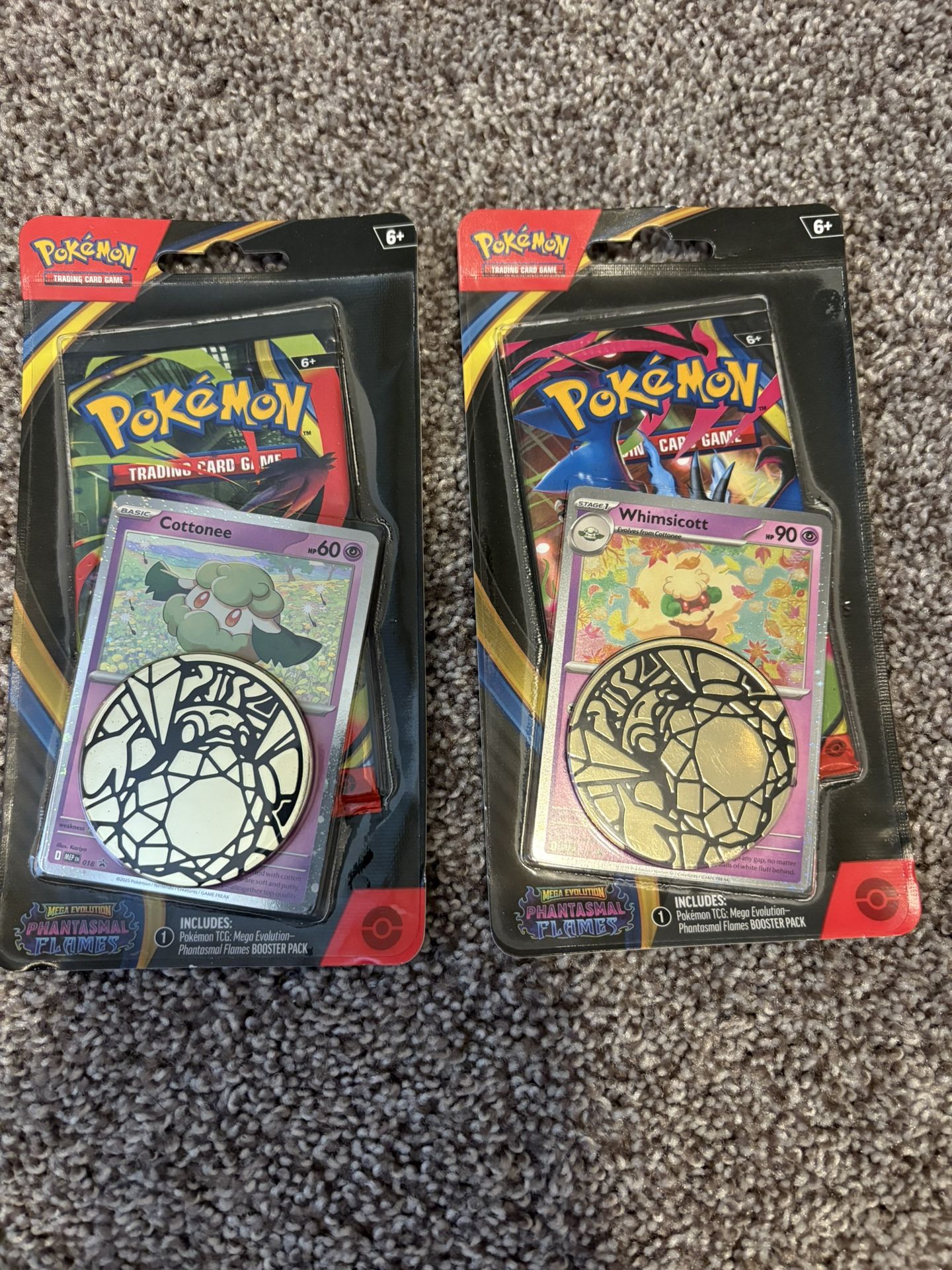 Pokemon Mega Evolution- Phantasmal flames booster pack. $125 for all 20. Cash Only No Trades. Each pack contain - 1 Phantasmal Flame Pack - 1 Promo Card - 1 Pokemon Card I have 7 packs of Cottonee and 13 pack of Whimsicott total of 20 packs together.
