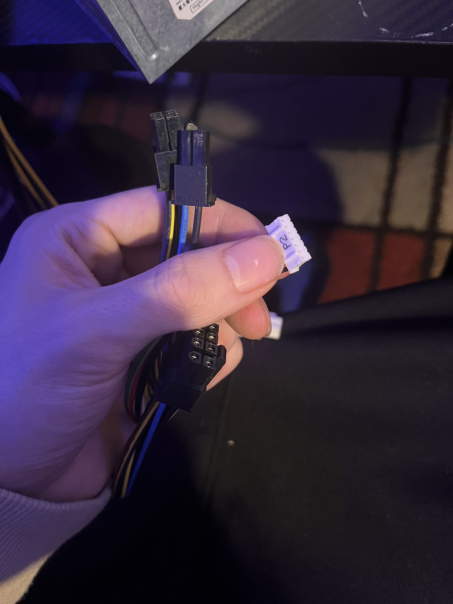 1 x 6 pin atx power cord 2 x 8pin gpu cable don’t got the box just the PSU, will be put in a bag tho and put away.