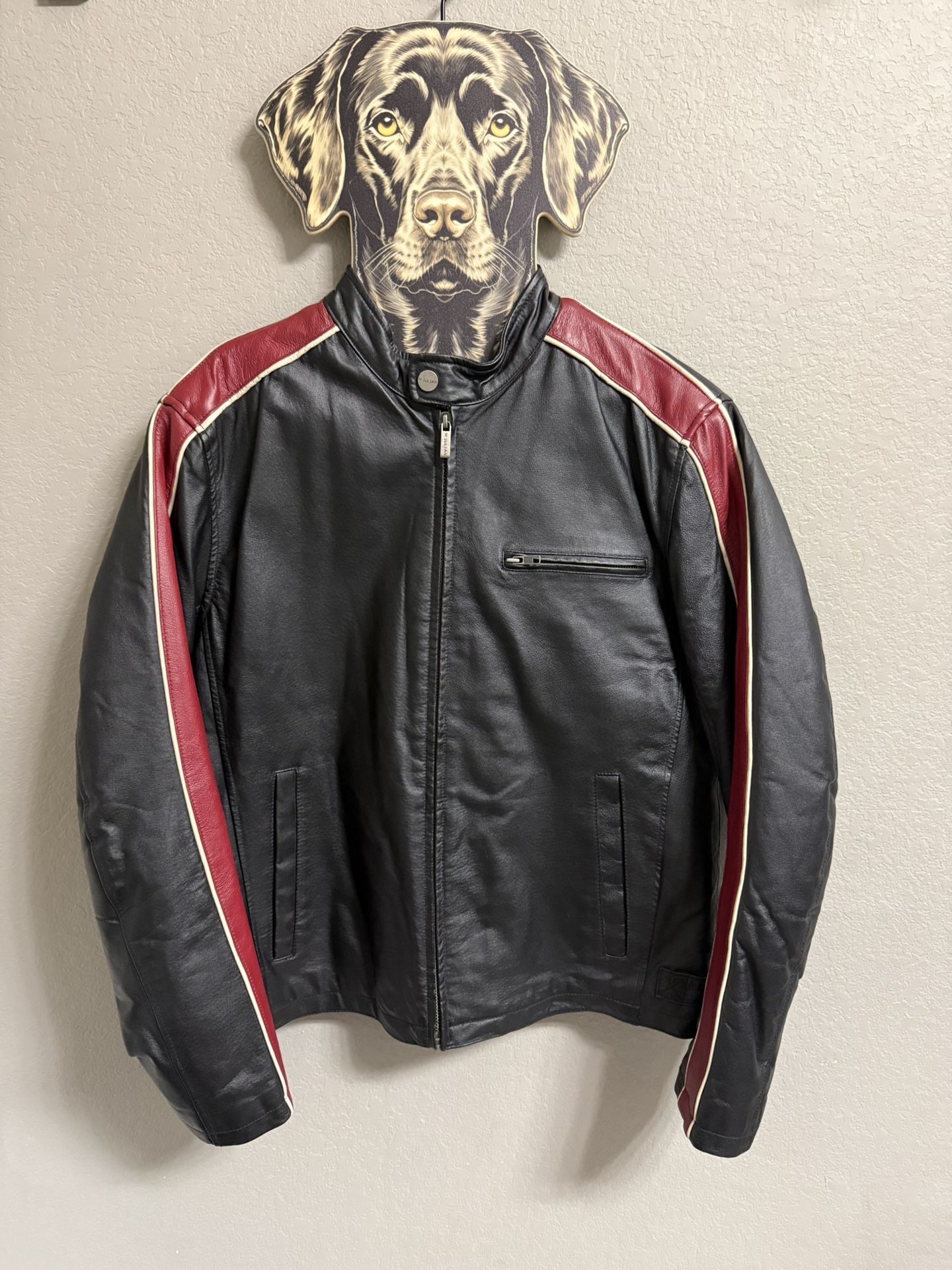 Vintage Wilsons Leather M. Julian Black Red Striped Motorcycle Jacket Mens size M