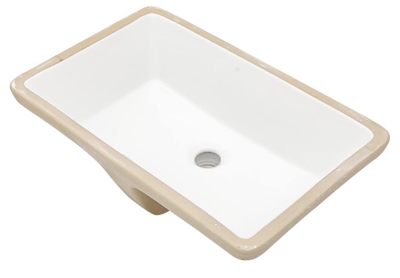 Lordear Undermount Bathroom Sink 21x13 Inch Bathroom Vanity Sinks Undermount Rectangle White Porcelain Ceramic Bathroom Under Counter Lavatory Basin with Overflow Undermount Bathroom Sink - The undermount design of this bathroom sink is both modern and minimalist, while the white porcelain ceramic is simple and classic. Undermount bathroom sinks are designed to be mounted underneath a bathroom countertop, taking up less space than traditional sinks. Additionally, the lack of rims and edges provides a seamless appearance which adds to the beauty of the sink Easy to Clean - As a result of its non-porous nature, porcelain ceramic is easy to clean and maintain. Stains and dirt are easily wiped away with mild soap and water Durability - Porcelain ceramic is a highly durable, non-porous material that is able to resist stains, scratches, and other types of damage. A white porcelain ceramic undermount bathroom sink will last for many years with proper care and maintenance Product Size - Exterior Dimension: 20 5/8"L x 13 3/8"W x 7 1/4"H;Interior dimension: 18 4/5"L x 11 2/5"W x 7 1/4"H Suitable Drain Size:1-3/4". Faucet and Drain set not included