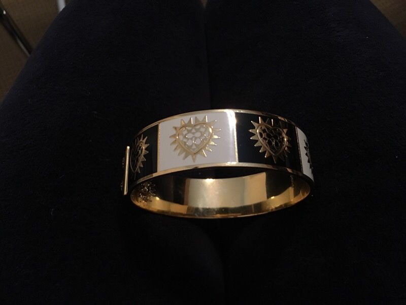 Coach black & white gold tone bangle bracelet