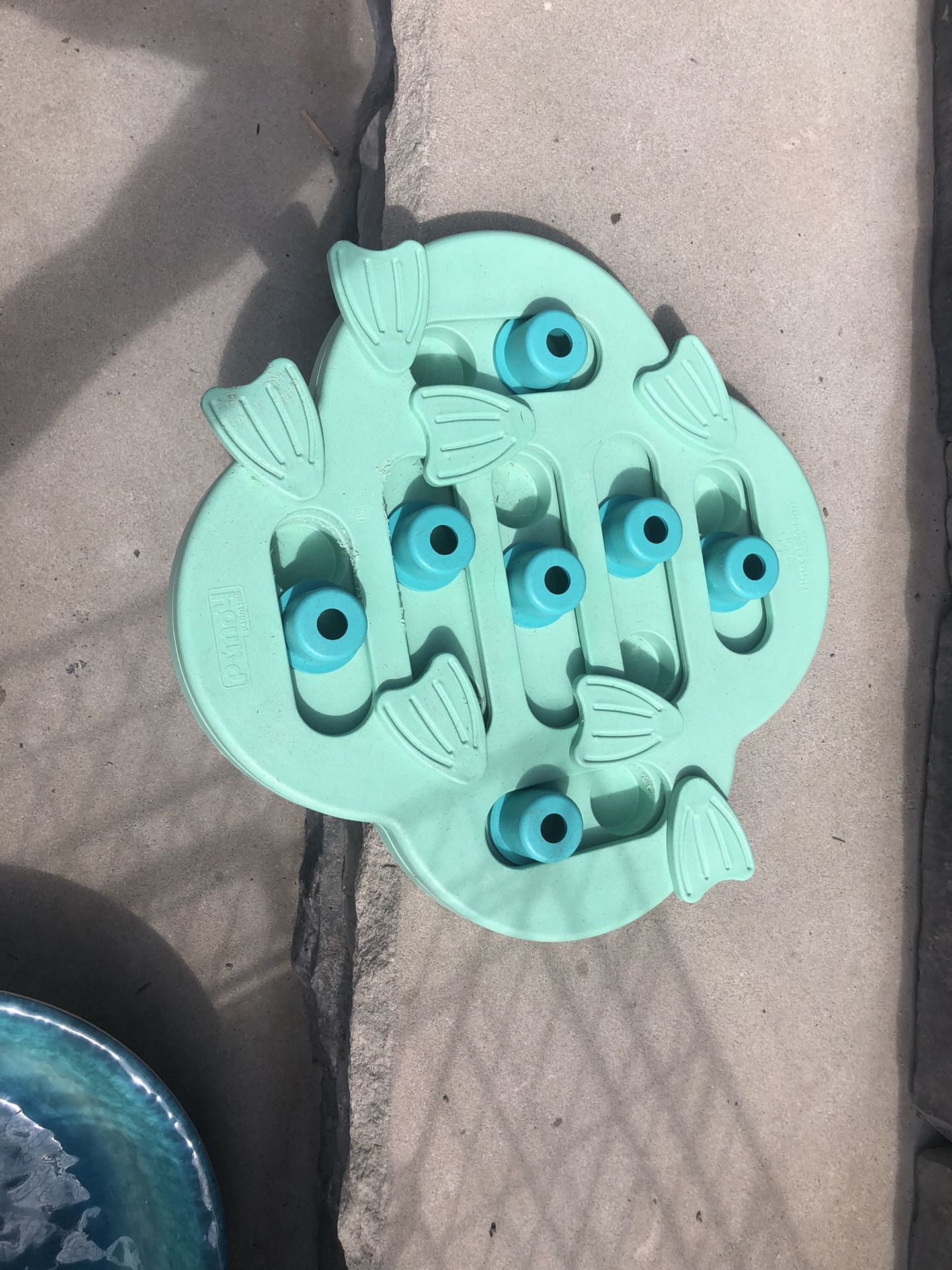 The Nina Ottosson by Outward Hound Interactive Dog Hide N' Slide puzzle game is a fun way to engage your dog's mind and activate their problem solving-skills. This level 2 intermediate puzzle dog toy comes with two types of hiding spots for snacks or kibble for a total of 14 treat compartments: under the swivelling flippers and in the hollow sliding blocks. You can vary the difficulty level by placing treats just under the flipper for newcomers. And once your dog gets the hang of it, you can increase the challenge by placing the treats in the hollow block, and watching your dog try to figure out how to slide it back and forth to release the treat into the flipper compartment. Made from food safe materials that are BPA, PVC and phthalate-free so you can feel safe playing with your dog over and over again! Easy to clean with warm water and soap. Set Contains: Dog Hide N Slide Treat Dispensing Dog Toy Brain and Exercise Game for Dogs