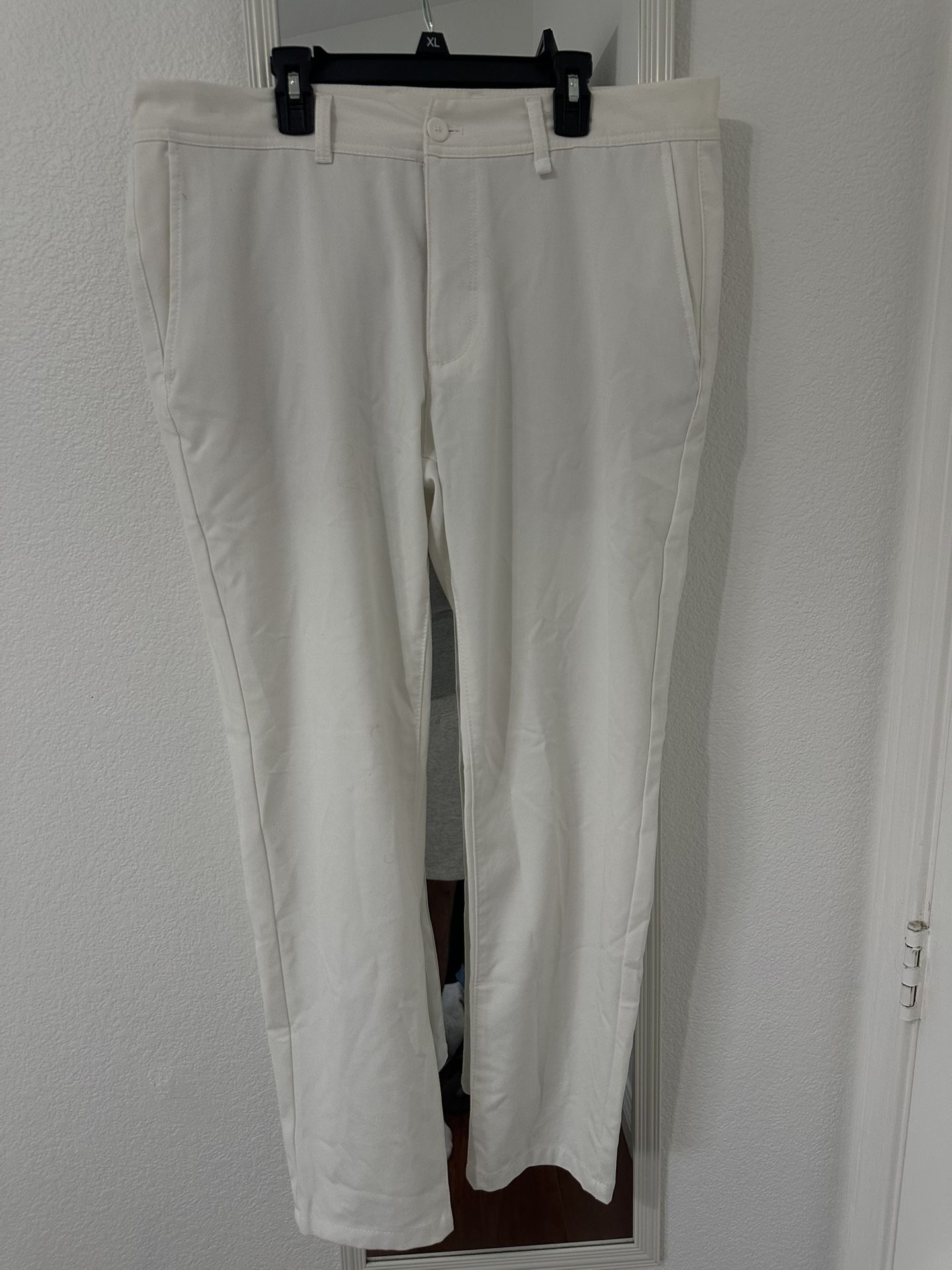 Polished and versatile. These slim-fit white chinos from ZARA elevate any smart-casual outfit. Size L.