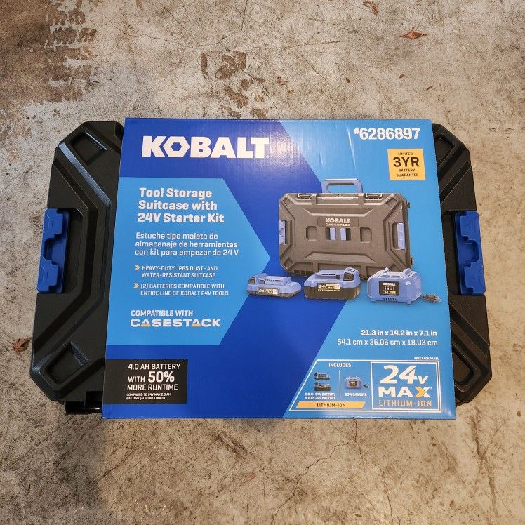 Kobalt 24-V 2-Pack Lithium-ion Battery Starter Kit with Toolbox (2 Ah and 4 Ah)