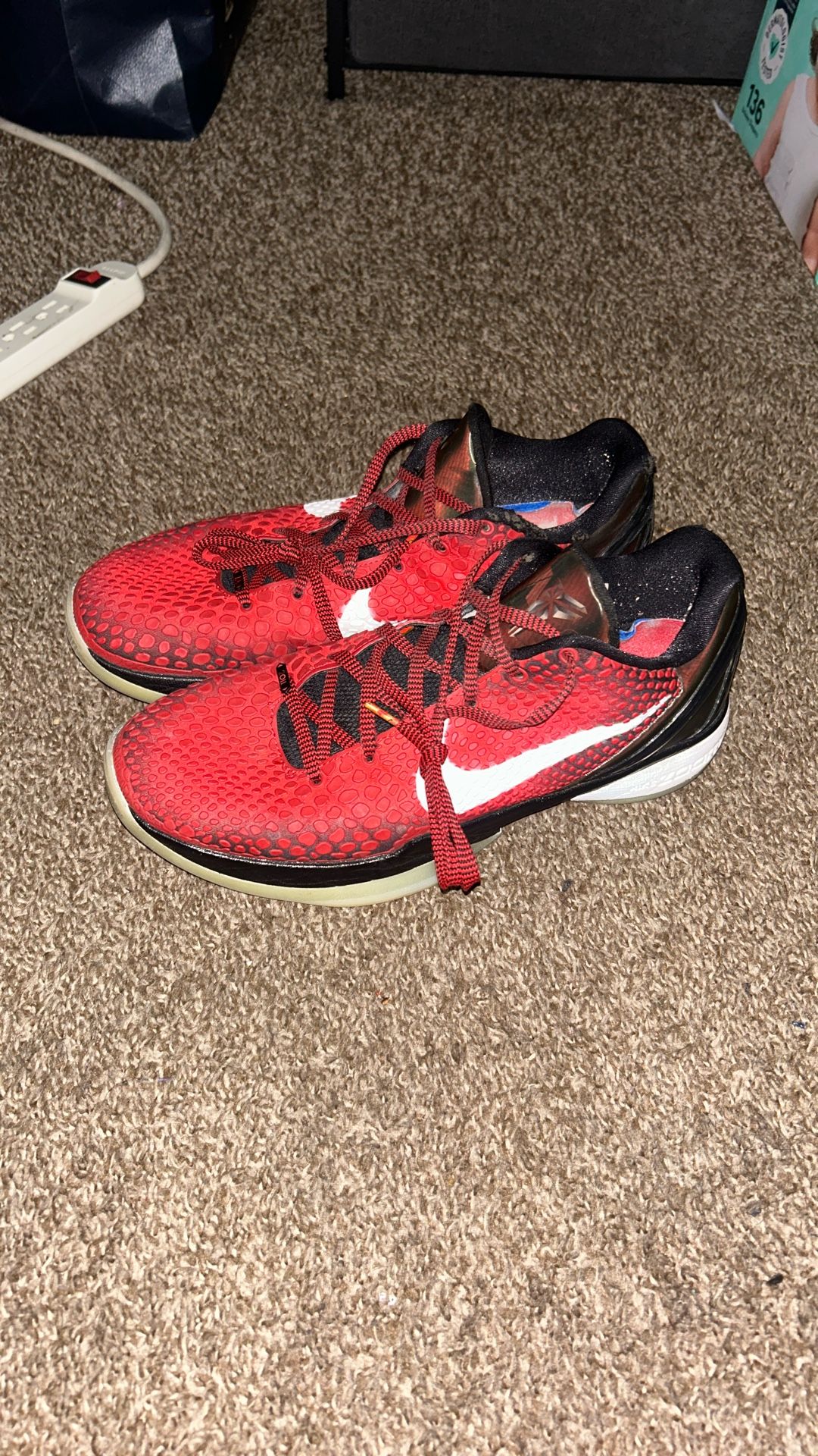 Kobe 6 Protro “Challenge Red” All-Star – Men’s 10.5 Selling my Kobe 6 Protro Challenge Red All-Stars. Shoes are used but in great condition—only worn a couple times. They do have a few minor scratches on the back, but nothing major and the traction is still 10/10. No separation, no sole issues. • Men’s size 10.5 • Worn only a few times • Minor cosmetic scratches on heel area • Excellent grip and performance • Clean overall I’m mainly selling because they’re too big for me—I wear a men’s 9.5. Open to trades or size swaps, especially Kobe’s or similar performance shoes in a 9.5. Message me if you want more pics or have trade offers. Serious buyers only