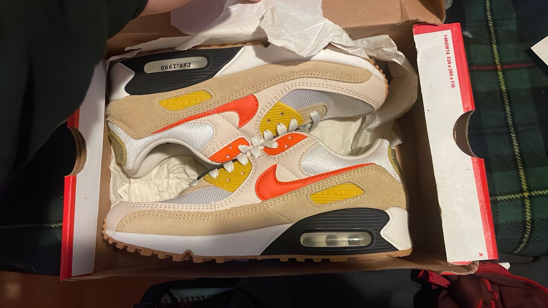 Nike air max 90 se brand new shoes box is mess up but never worn shoes just try to get rid of them or imma just throw it away