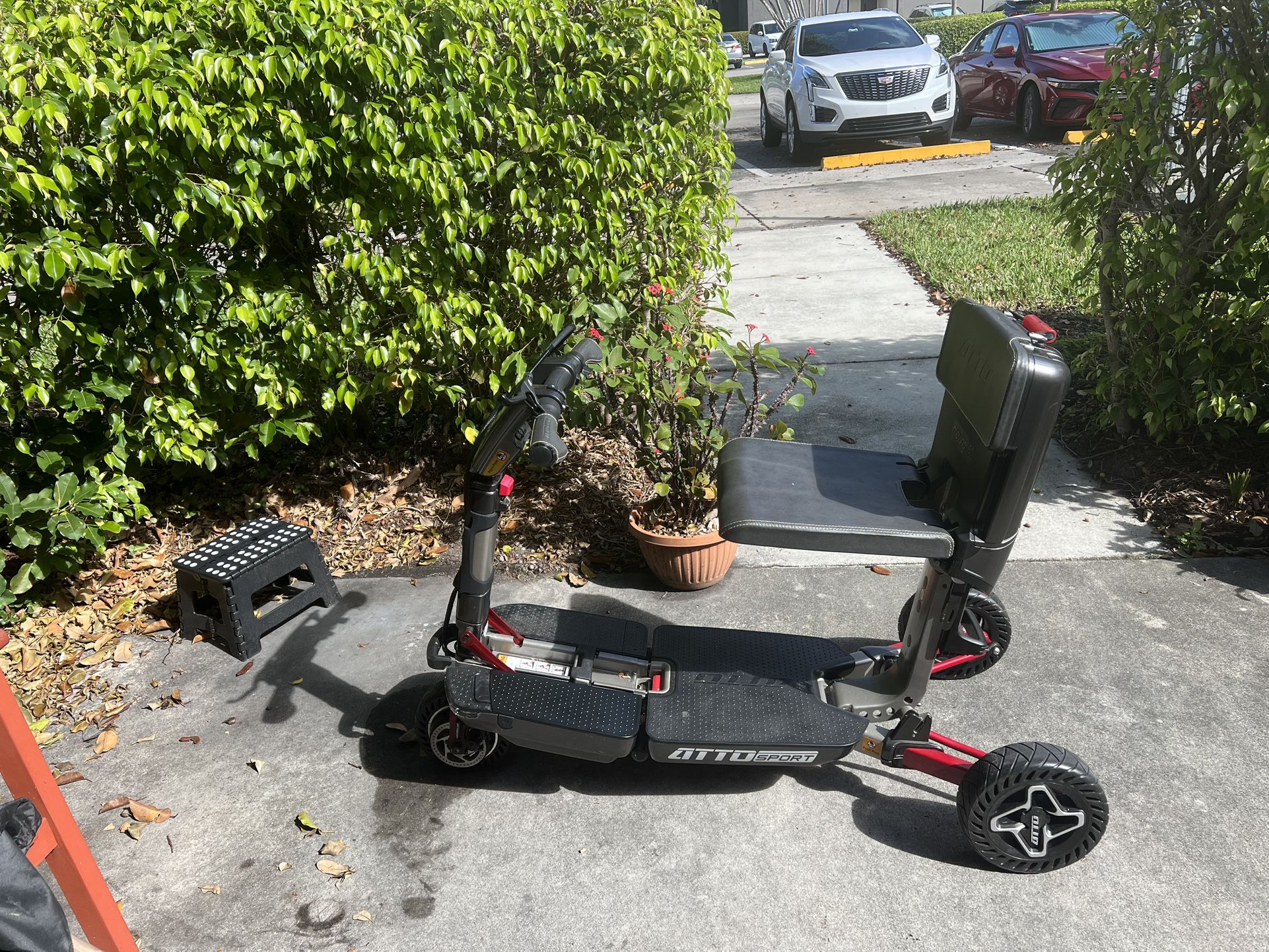 Atto Sport Scooter- 3 years old but never used. Cost over $3,000 new. Cover and instruction book included. You will need to purchase a battery from the manufacturer but very easy to order. This scooter is designed to fold for overhead baggage storage. Owner purchased with plans to travel but was to ill to ever use it.