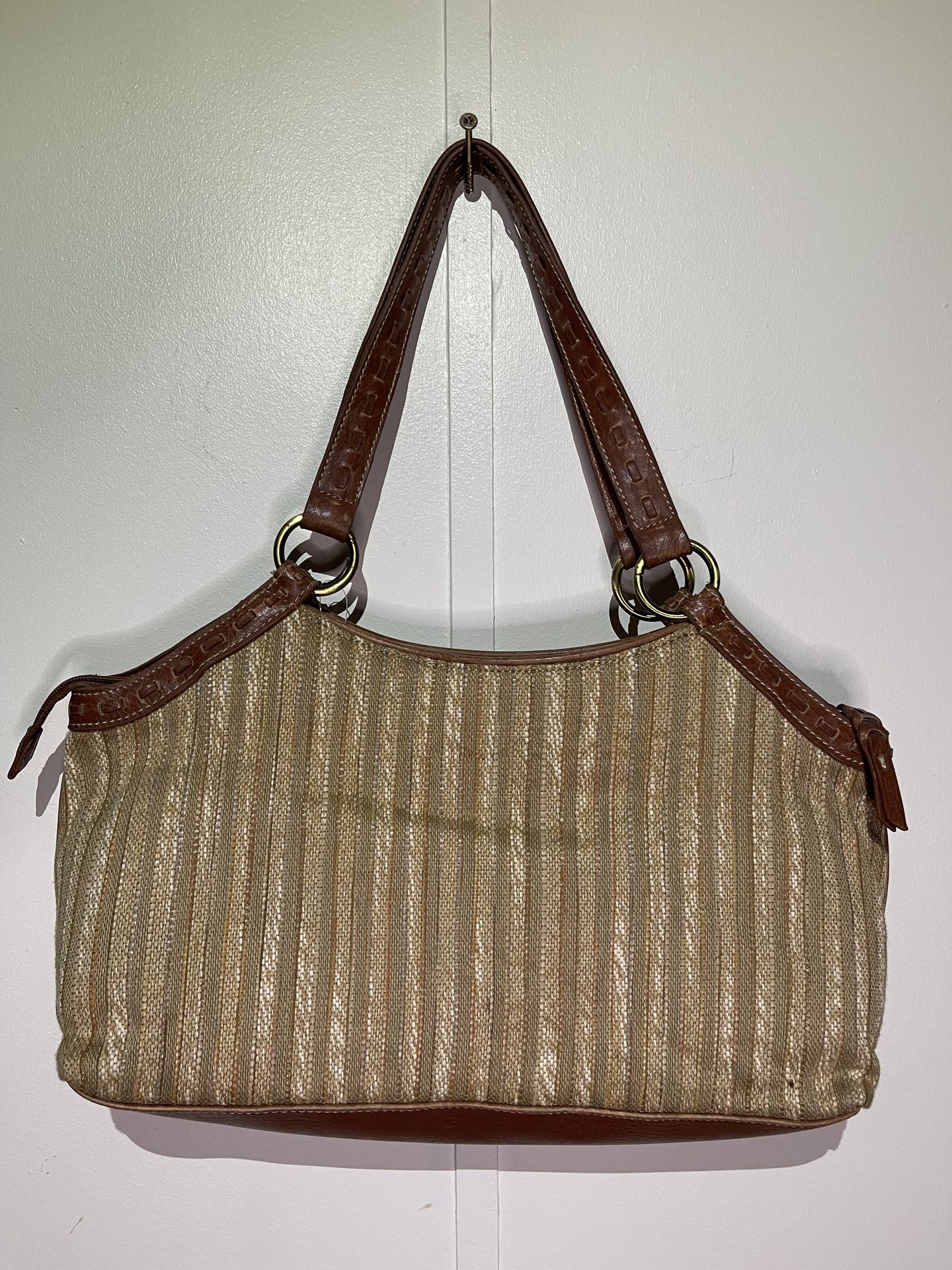 Relic Brown and tan striped handbag with leather trim