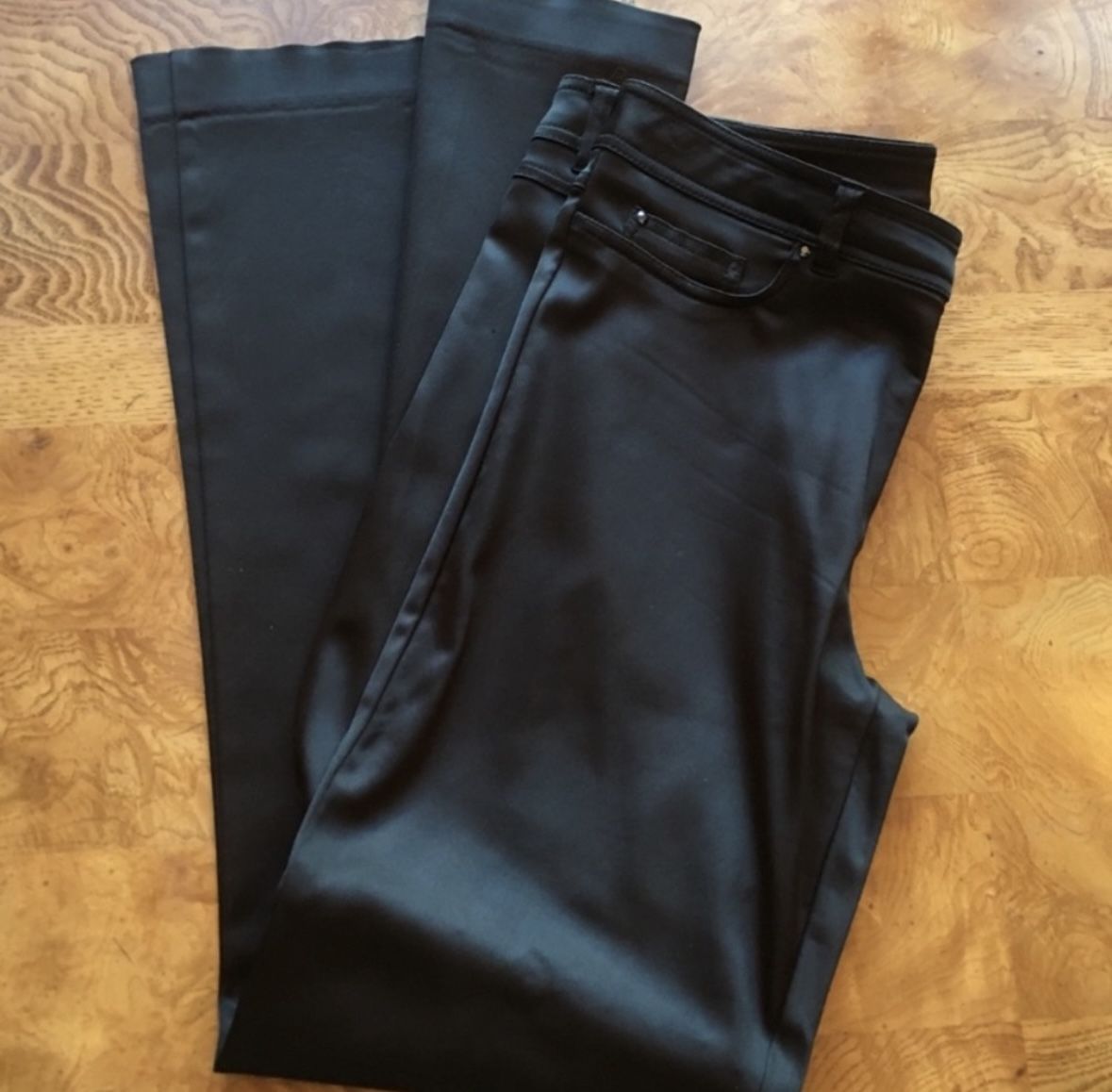 Cache Y2K black satin dress pants with rhinestone details. Great for parties, evening wear, or going out. Size 2 Excellent condition.
