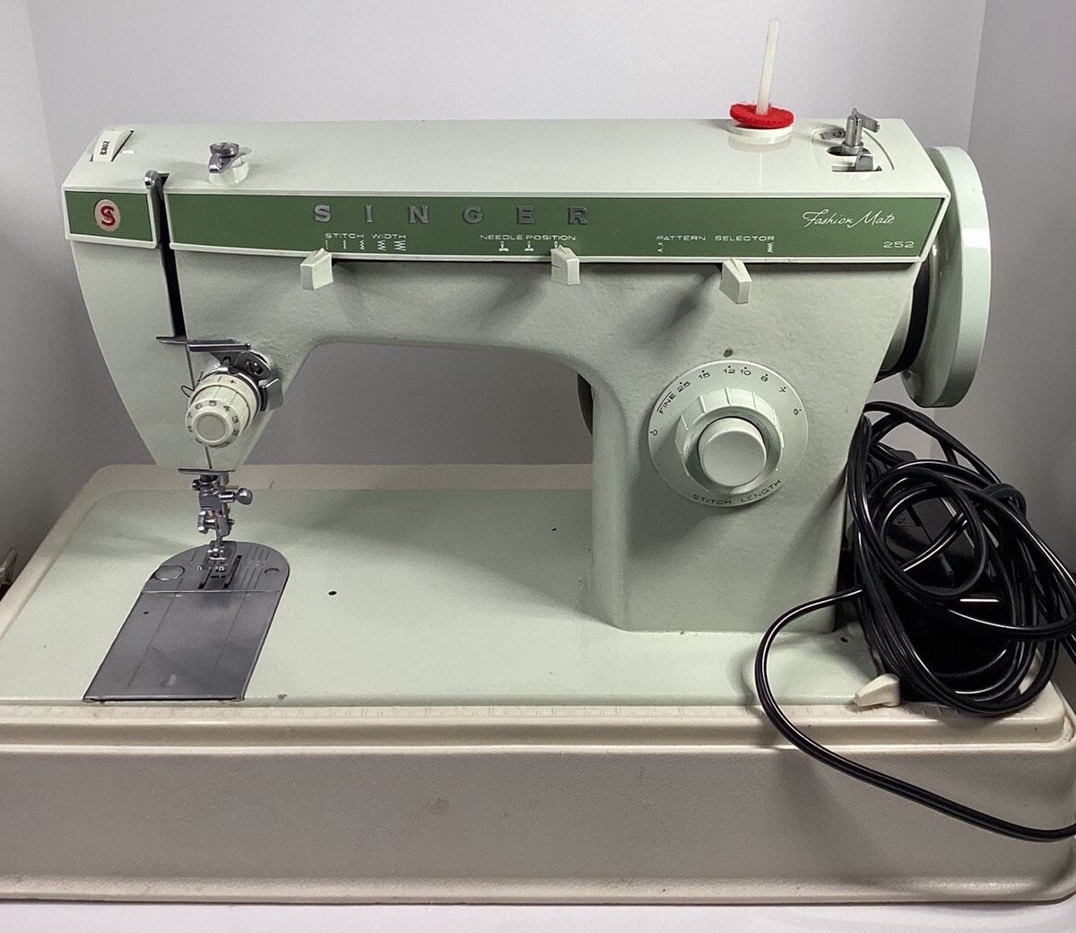 Singer Fashion Mate 252 — small to mid-range Singer from the Fashion Mate line (consumer model). Estimated value: $30 – $140 (common used-machine range). Comes with Cover.