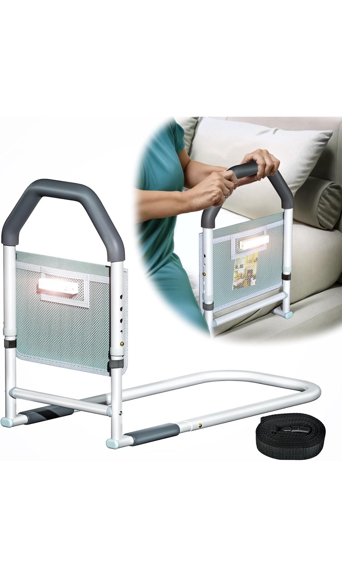 Brand: ArixMed Size: Bed Rails Item Weight:2.03 Kilograms Adjustable Length: Yes Age Range (Description) : Adult Manufacturer : ArixMed Sturdy and Reliable: The bed rails are made of premium steel and come with a horizontal stabilizing bar, providing exceptional strength and stability. They offer maximum support for the elderly and individuals with limited mobility, ensuring their safety when getting in and out of bed. Illuminate Safety: ArixMed bed grab rail features safety lights designed to prevent accidents and falls. It easily attaches to the specific pocket on the storage bag. The safety lights automatically activate upon detecting motion, ensuring safety when getting out of bed at night. Convenient Storage: Bed assist rails come equipped with a versatile storage bag. This premium, lightweight, and pouch is designed to store essential items such as glasses, remote controls, medications, magazines, and more. It keeps items within easy reach, providing added bedside convenience. Universal: Our bed rail is compatible with various bed sizes, from twin beds to king-sized beds, ensuring versatility and convenience for different bed types. The included adjustable anchor straps provide additional security, allowing you to firmly secure the rail to the bed frame. Adjustable Height: The bed rail features a height- adjustable design, allowing you to customize the rail's height for optimal support, making getting in and out of bed easier and safer.