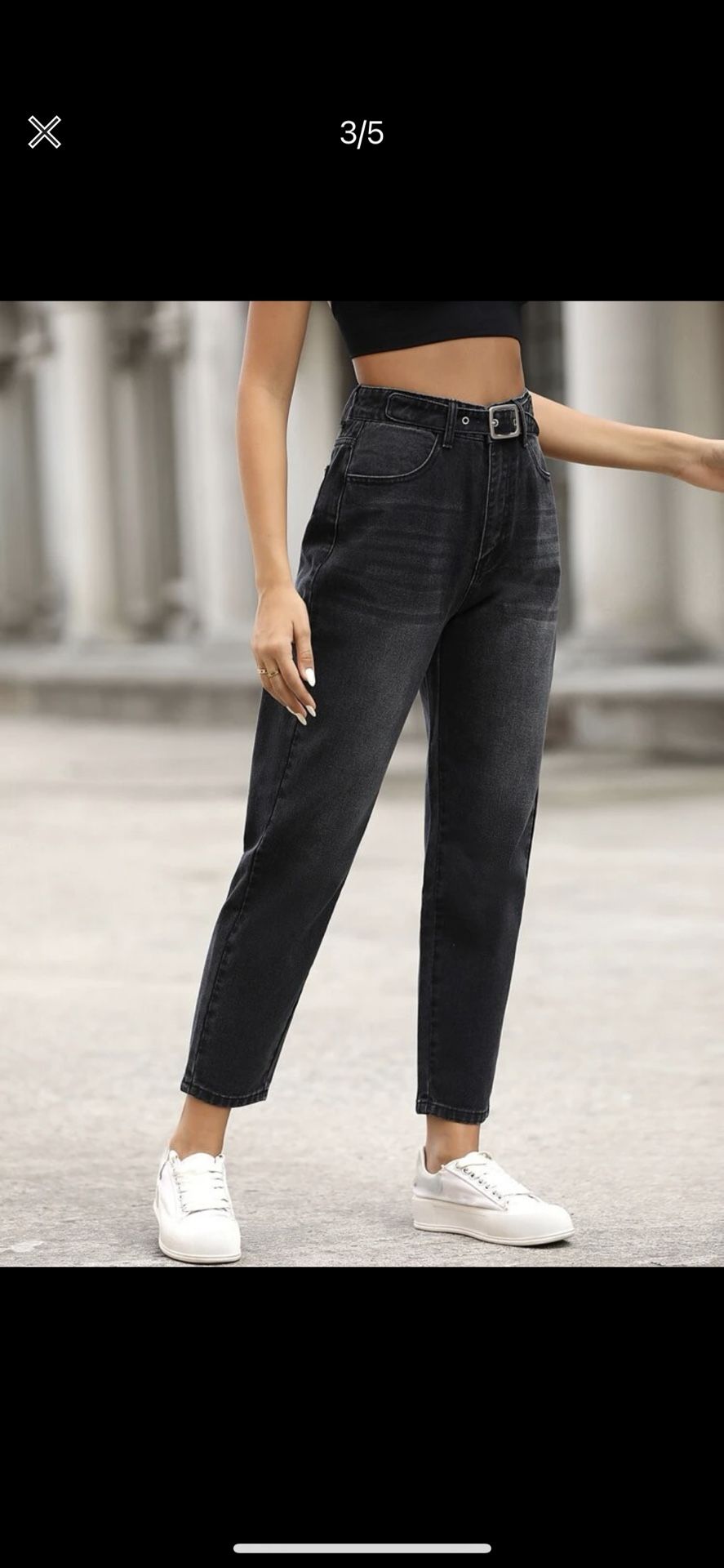 Black jeans with belt. Never worn. Size: L: 39.4, Waist: 29.7