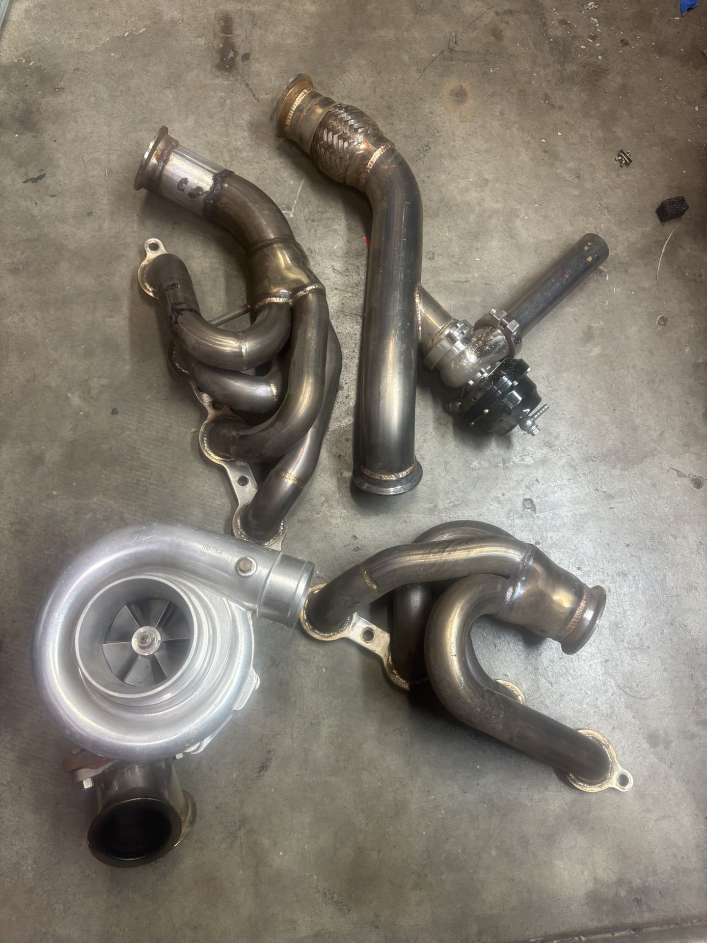 Turbo kit still needs piping fo cold side and water pump for intercooler Ls turbo kit Hks blowoff valve On3 76mm turbo On3 waste gate Cx racing exhaust Cx racing Intercooler