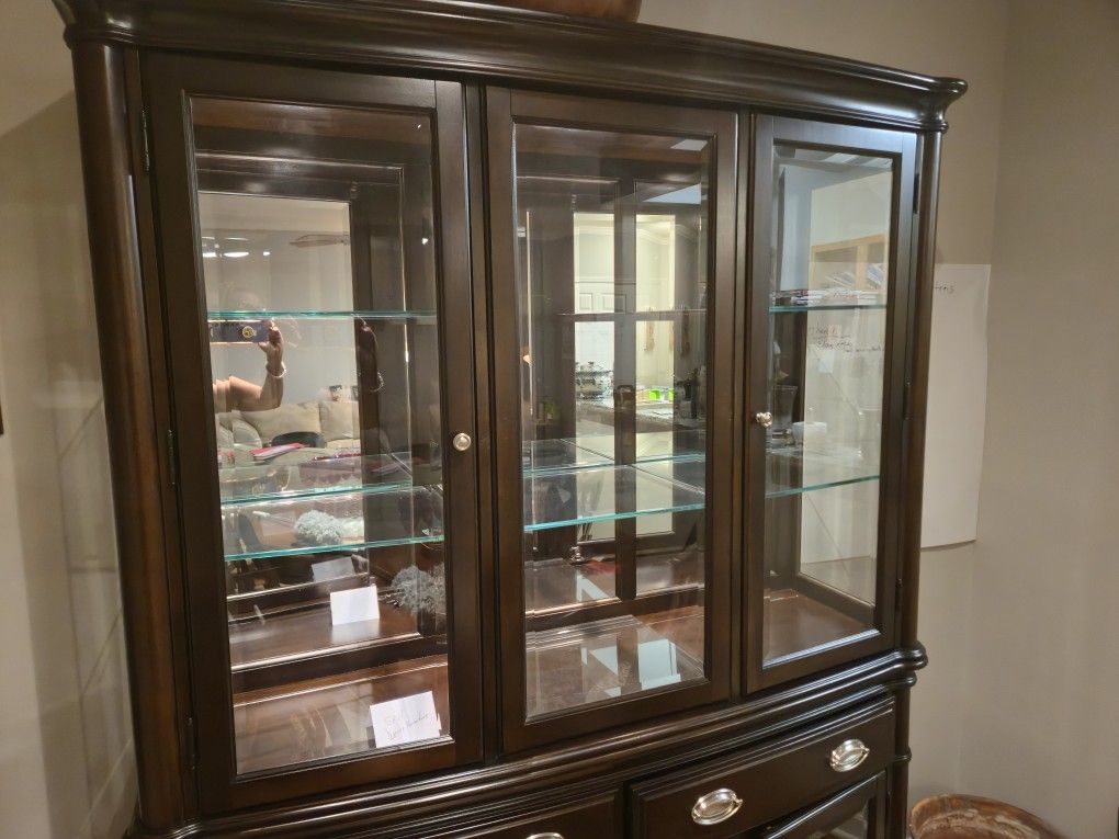 Mahogany China cabinet, table and four chairs