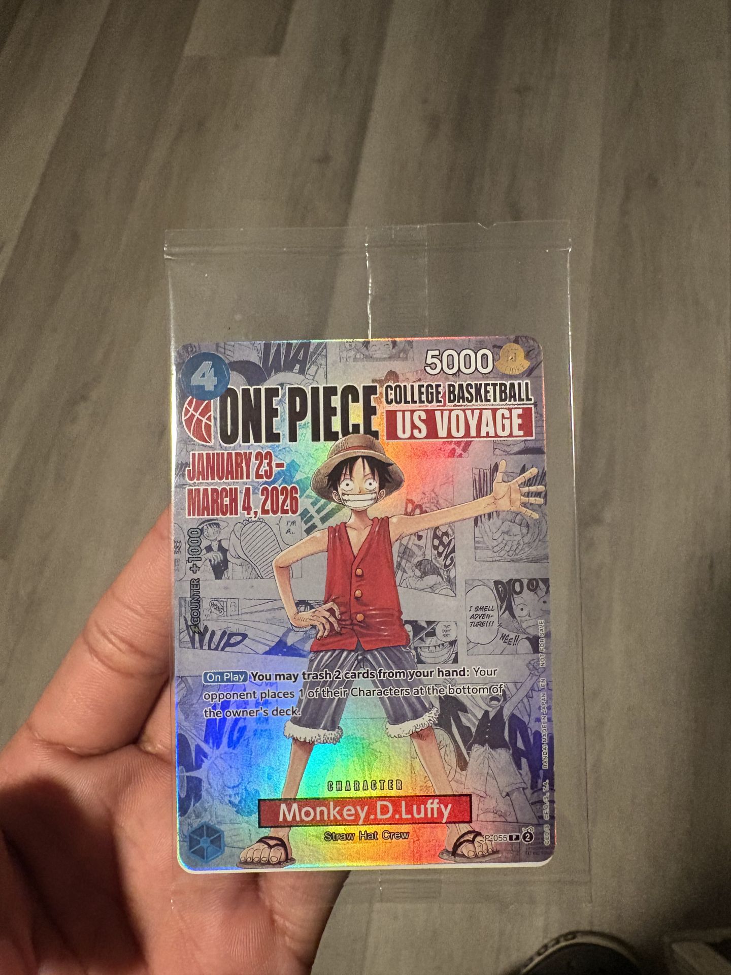 One Piece Monkey D. Luffy US Voyage College Basketball Promo Card (SEALED)