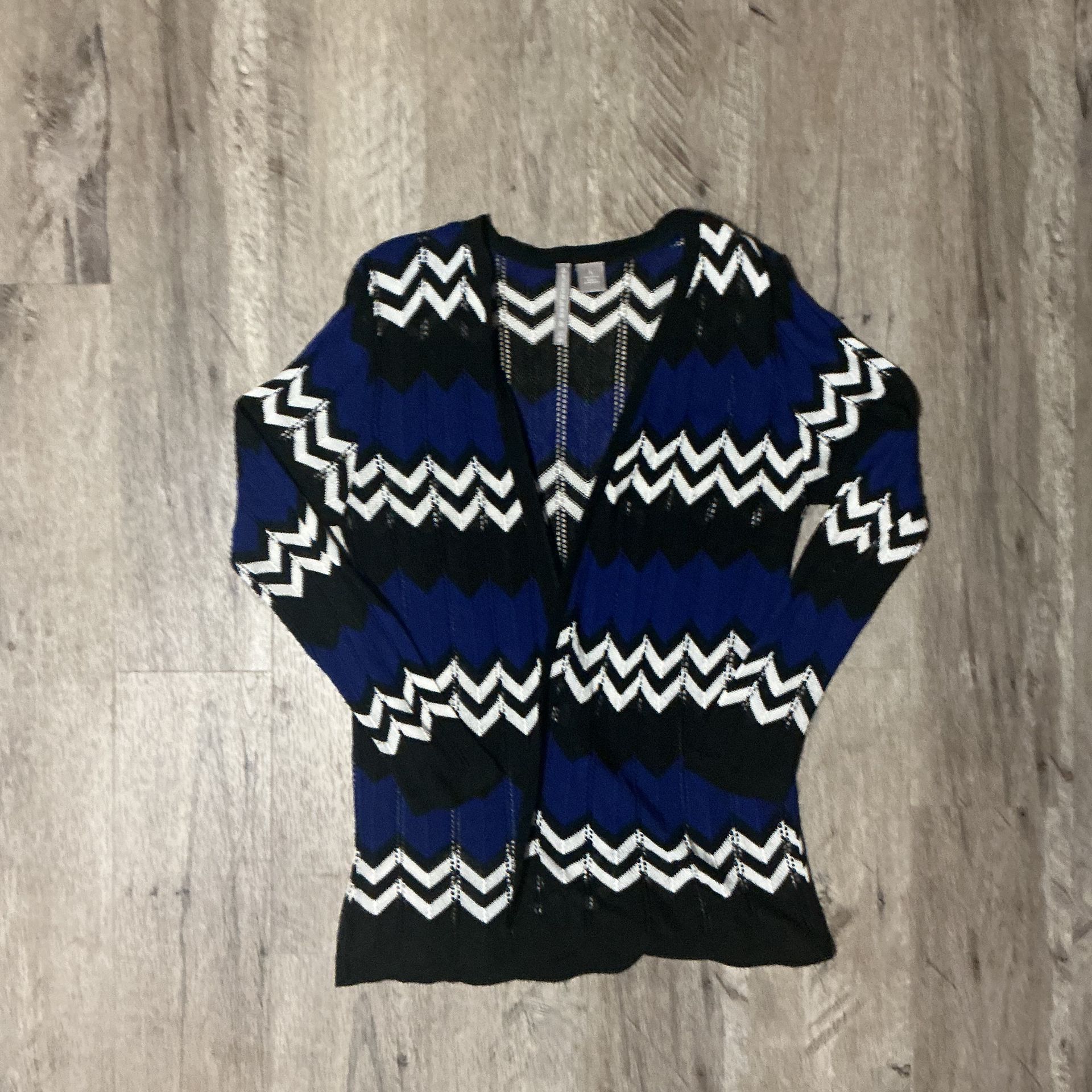 Stitches & Co. Women's XL Blue and Black Chevron Knit Open Front Cardigan