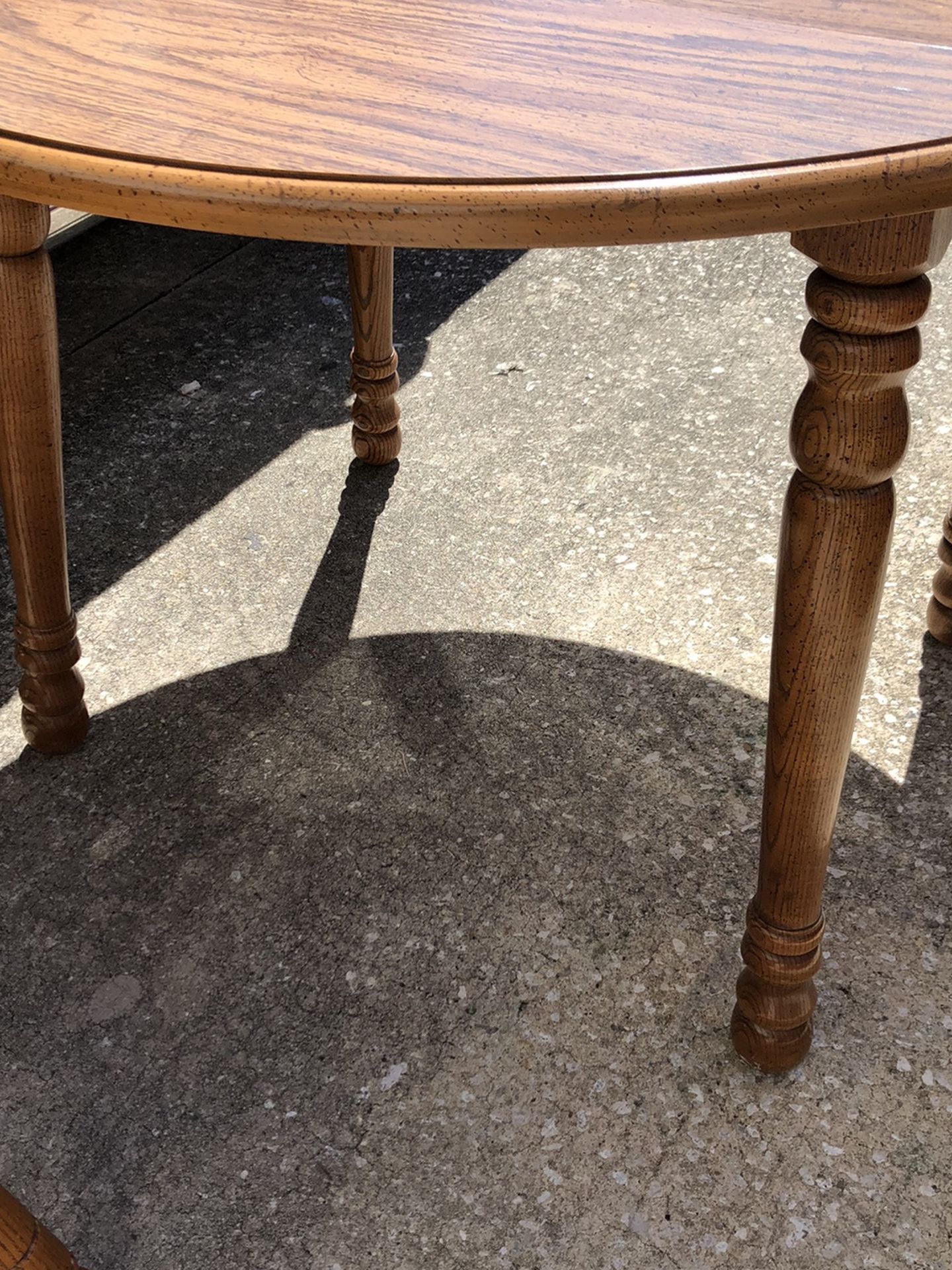 Vintage style leaf table 41’ W x 24’ D with leafs fold down and 41’ open all around with 2 beautiful chairs like new !! $225
