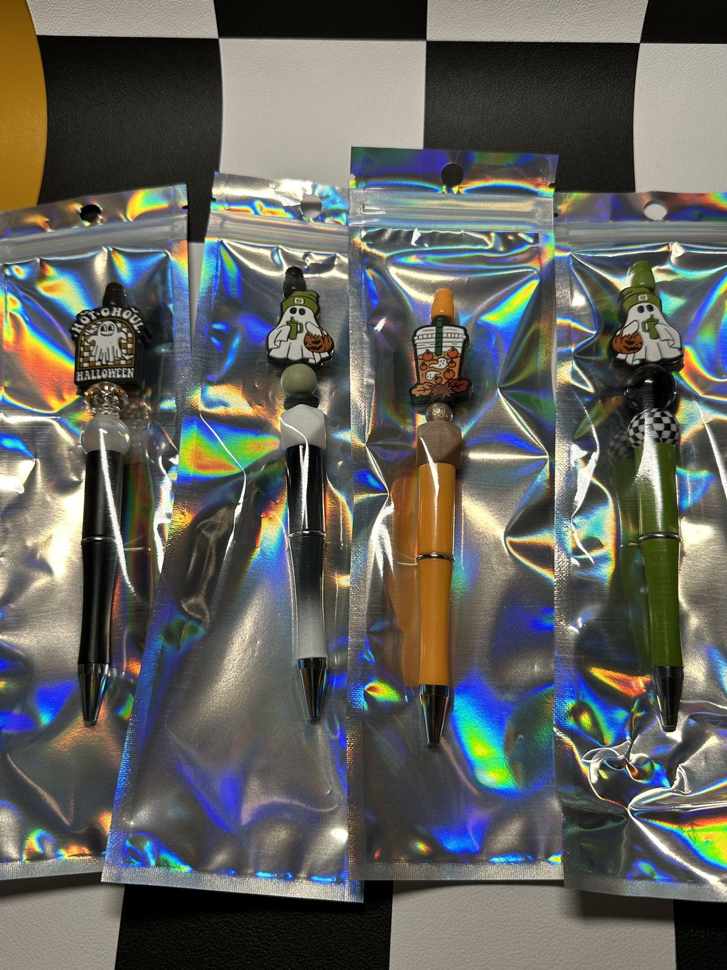 Spooky beaded pens. Hand-made, each are one of kind. $5 each or buy 4 get one free. Better deals when purchasing more than $20 worth.