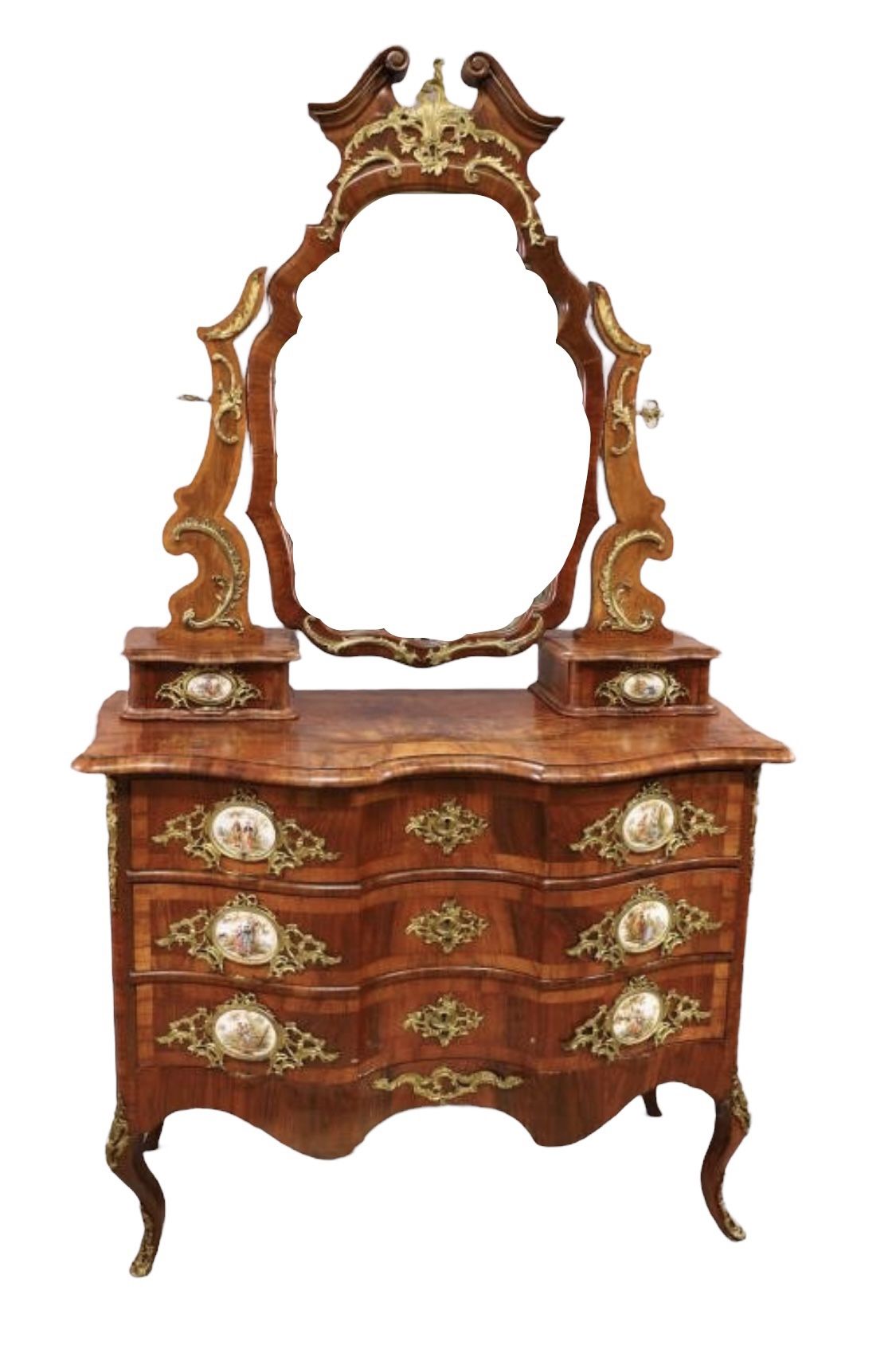 FRENCH PORCELAIN MEDALLIONS DRESSER AND MIRROR - MEASUREMENTS: 41" W x 20" D x 73" H.
