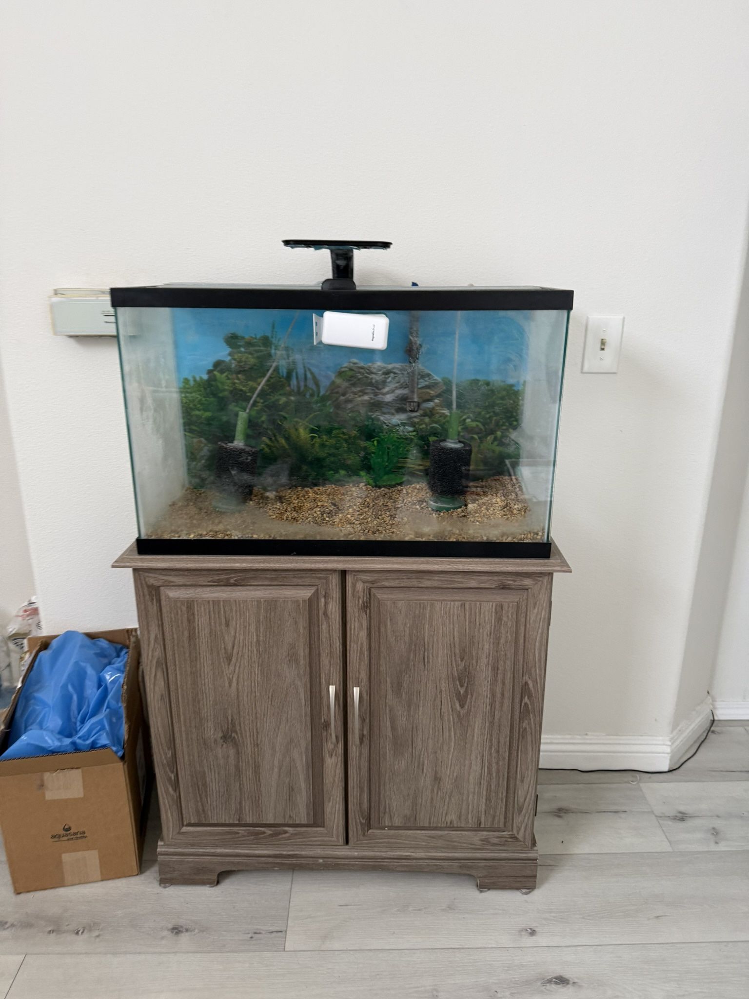 30 Gallon Aquarium Stand, air filters/pump, equipment and electronic gravel vacuum