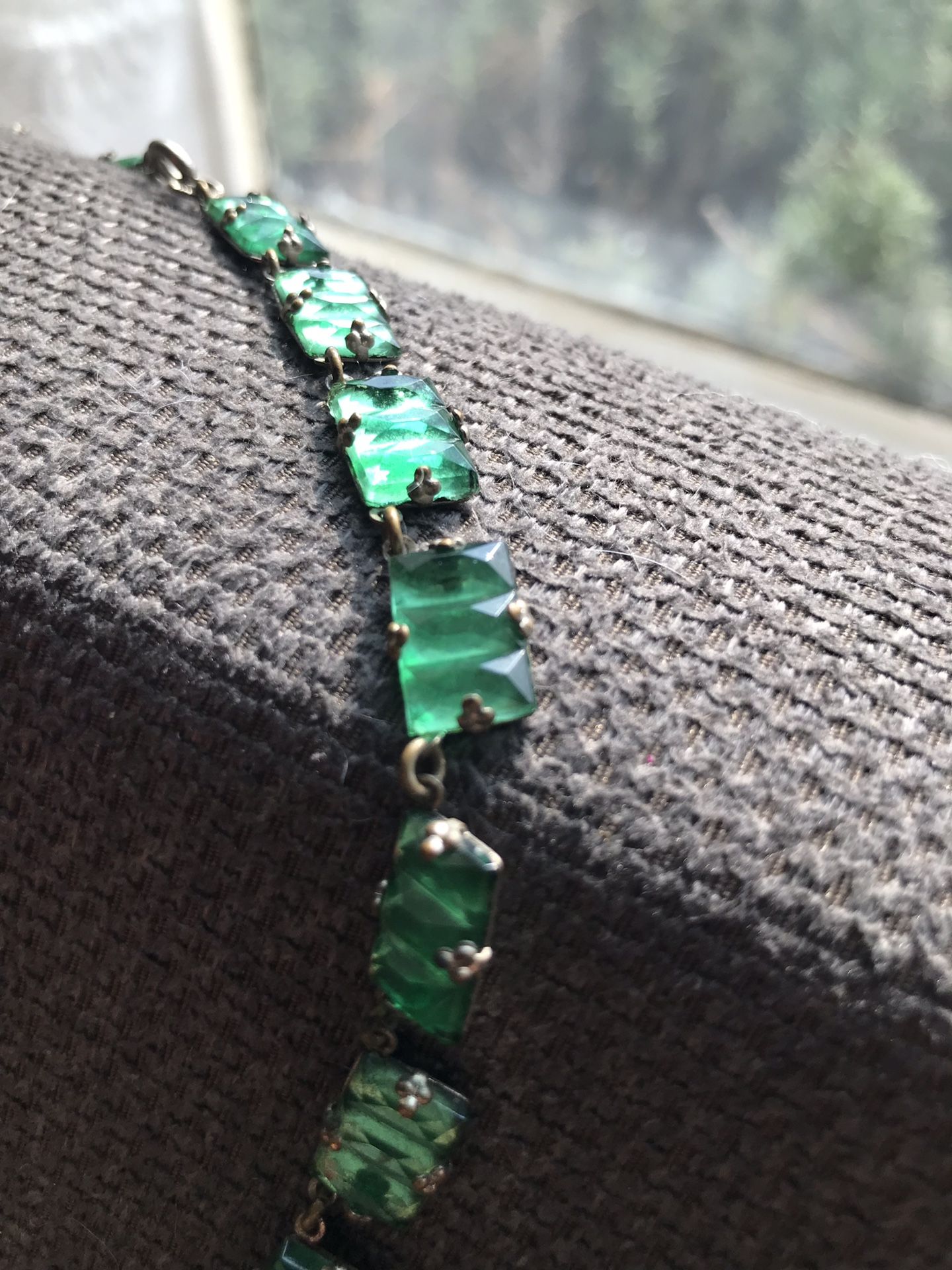 Must see to appreciate. Vintage green stoned necklace (possibly choker style) 16” long