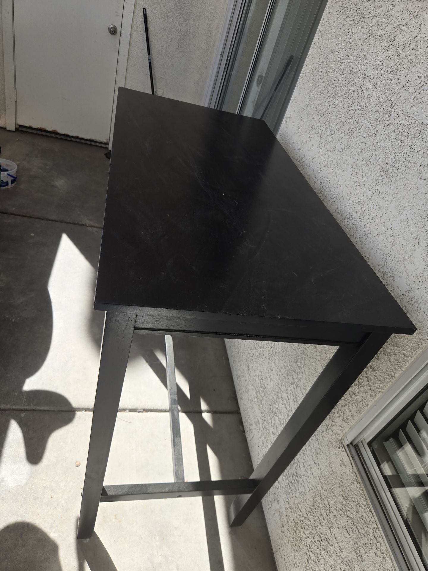 A tall black table good for dining