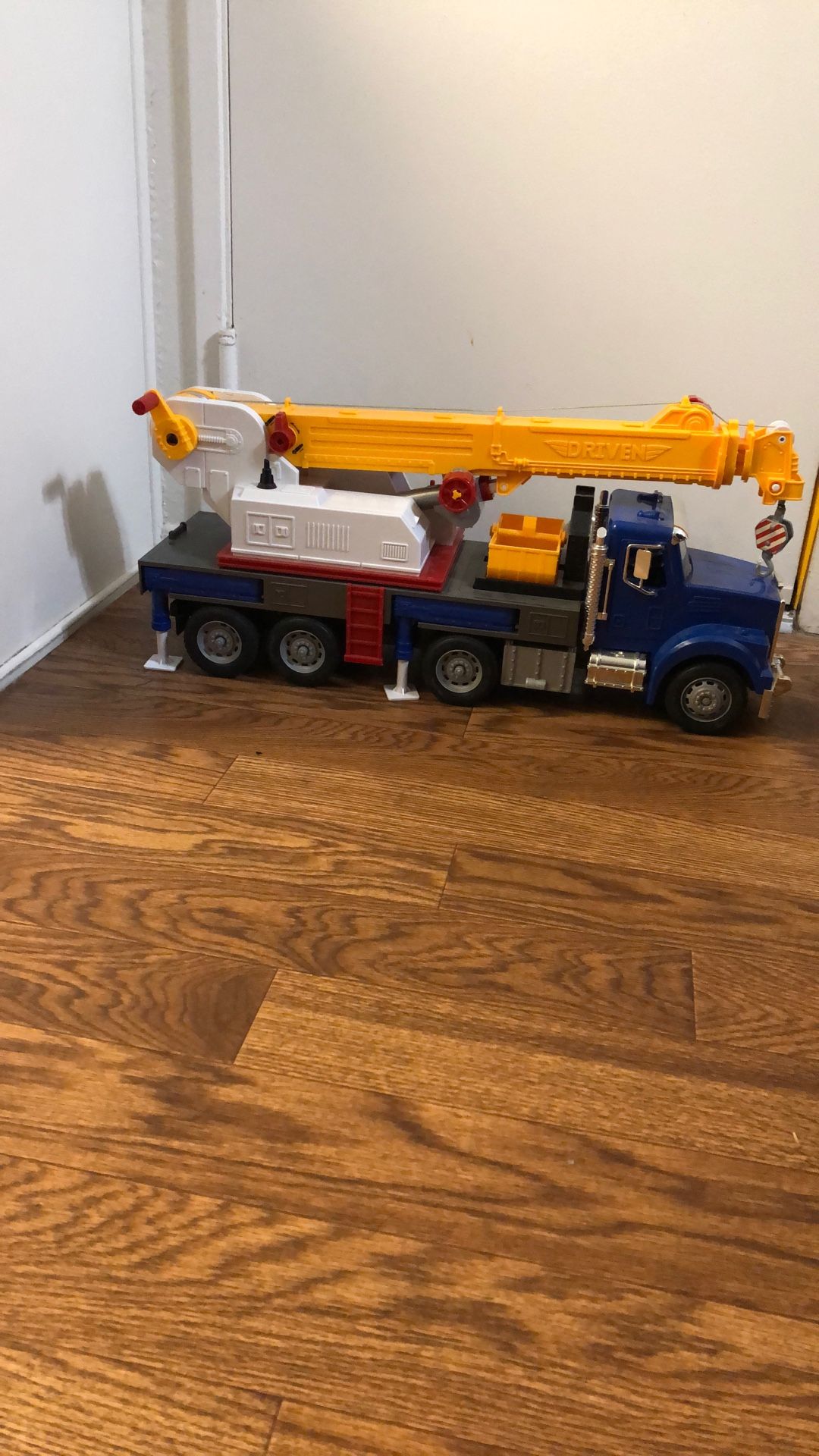 Large crane truck with boom that raises and extends. Over 2ft long and 10” tall. Has lights and sounds and a basket for the boom. Retail $59. Please feel free to make an offer Thanks!