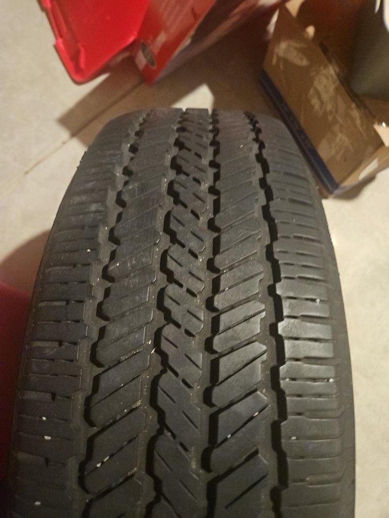 I sold my 2012 Pathfinder and kept one of my Spare Tires. I do not need it and it has a lot of life left on it as you can see by the low tread wear. It is a 245/75R/16. M &S 109S All Season Tire General Grabber AW. I would like $50.00 or B.R.O. The rim goes with the tire. Text or call at 603- two-oh-3 -1-eight-9-six.