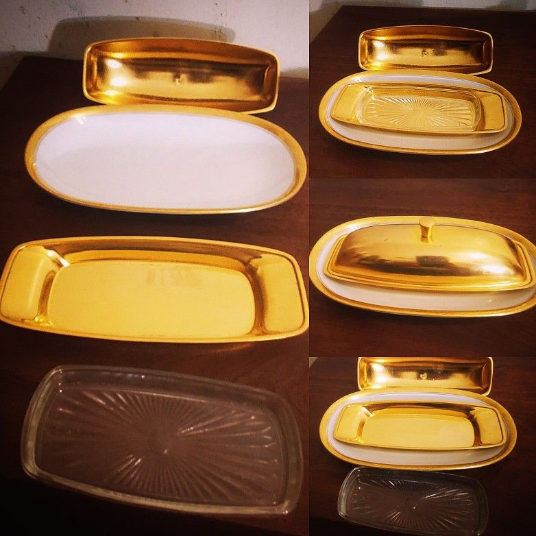 Beautiful Vintage Butter Dish Set from Heinrich, based out of Bavaria, Germany. Made with real gold, this is sure to impress guests at any dining table! Butter Dish Holder 8″ long 3 1/2″ deep 3″ tall Butter Dish Plate 9 1/2″ x 5 1/2″ Butter Dish 6″ x 3″ $59. Delivery available 😎 Cross-posted with Agora Mid-Century. Visit our website at https://offerup.com/redirect/?o=d3d3LmFnb3JhbWlkY2VudHVyeS5jb20= for our full line of inventory.