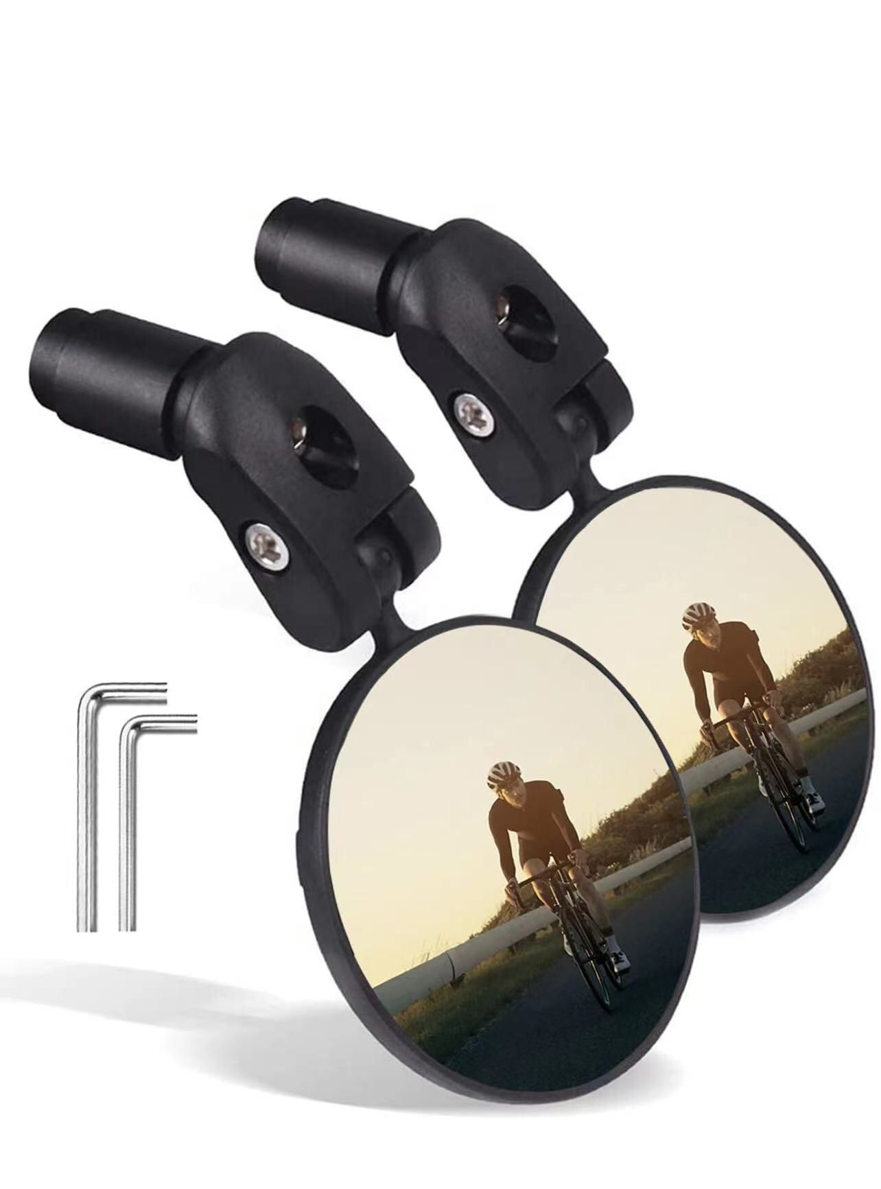 Universal Design:Bar end bike mirror can be installed on the left and right sides of the flat handlebar or the drop handlebar. Fits inside handlebar within 17.4mm ~ 22mm(inside diameter). Perfect for road bike, mountain bike, city bike, E-bike,etc. Convex mirror:Bike rear view mirror Made with top-quality and durable materials, this convex mirror (Ø 76 mm) for large field of view and a stable image.The compact design makes it shockproof, and the foldable design makes it foldable when encountering obstacles. 360 Degree Rotation:Base with 360 degrees full rotation and could adjust to any direction to help you watch every direction of your back and offers you a clear view to ensure safe riding. Rugged & Durable:Bike mirrors for handlebars surface made of ABS Lens Case ,Acrylic Lens and High Hardness PC Bracket .Compared with the traditional glass mirror surface,it has a longer service life and is safer . Easy to Install: Bicycle rear view mirror 2pack comes with protective film please rem