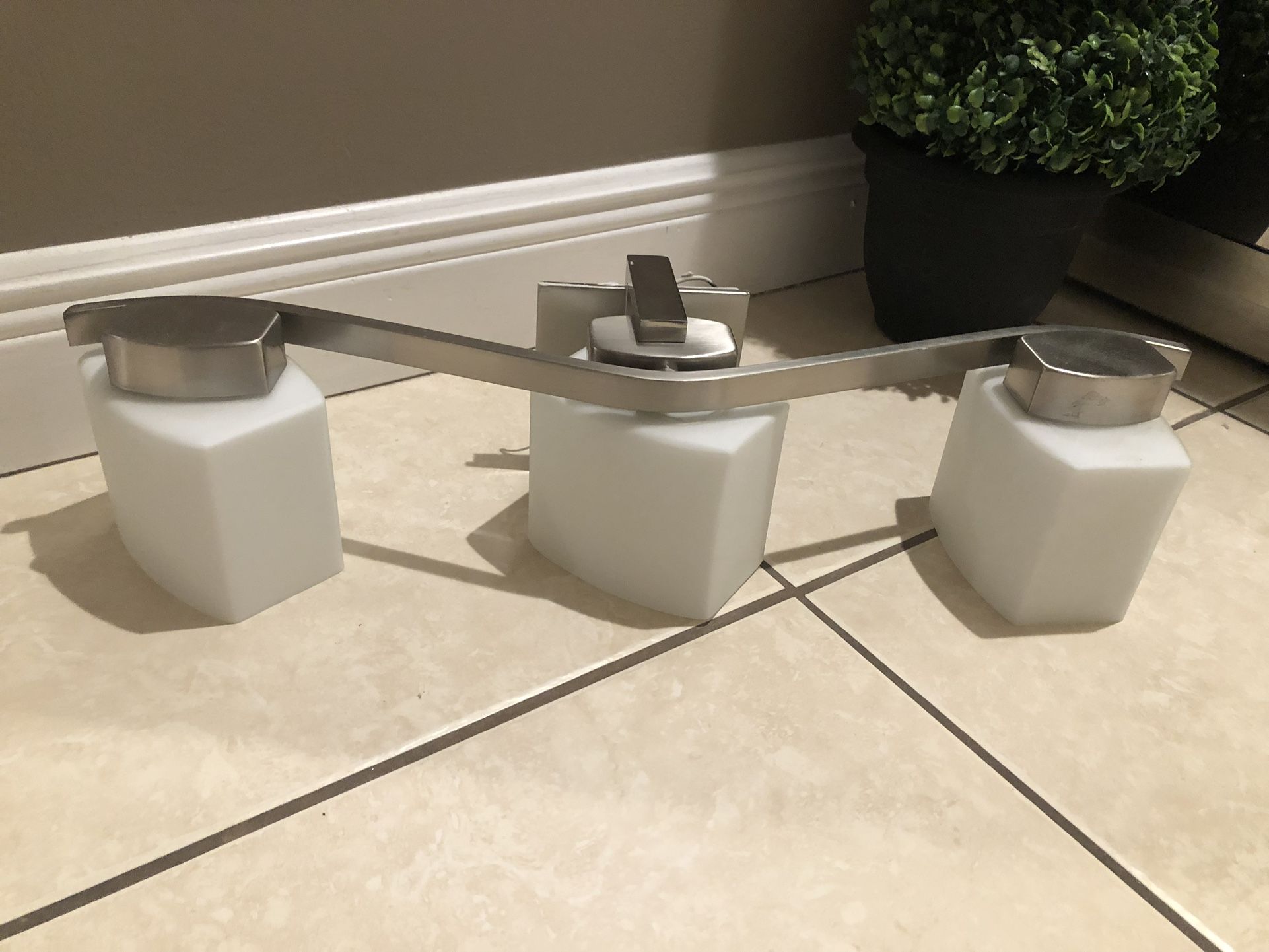 3-Light Brushed Nickel Vanity Light with Etched White Glass Shades