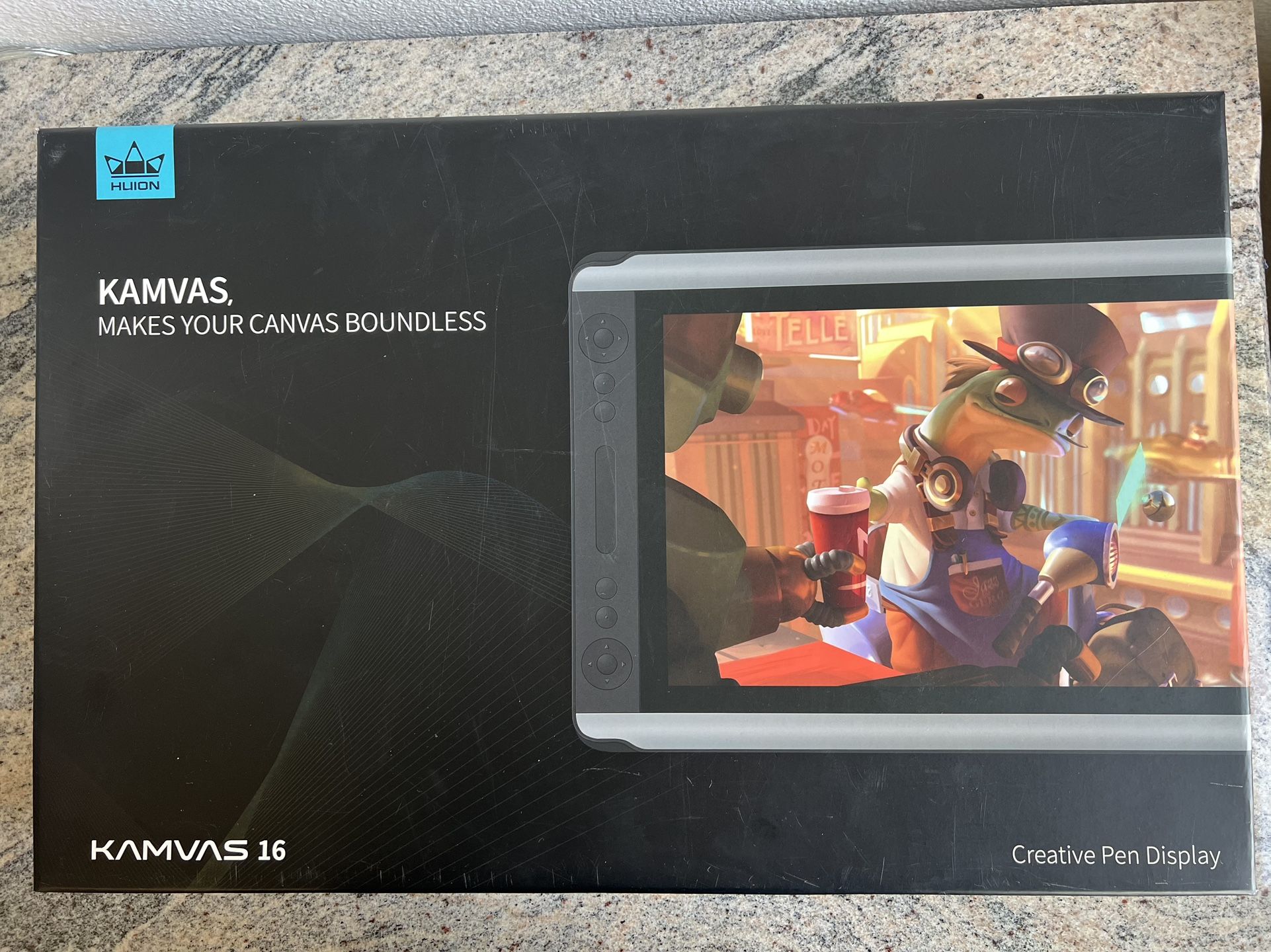 Purchased for my sons birthday but it’s too advanced for him. Description from Amazon: 2021 HUION KAMVAS 16 Graphics Drawing Tablet with Full-Laminated Screen Anti-Glare 10 Express Keys Android Support Battery-Free Stylus 8192 Pen Pressure Tilt Adjustable Stand - 15.6 Inch Pen Display https://offerup.com/redirect/?o=aHR0cHM6Ly9hLmNvL2QvZHFNUkltTw==