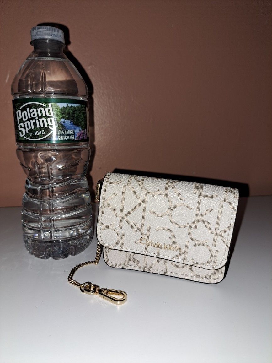 Calvin Klein woman's mini card case folding wallet Water bottle for size reference
