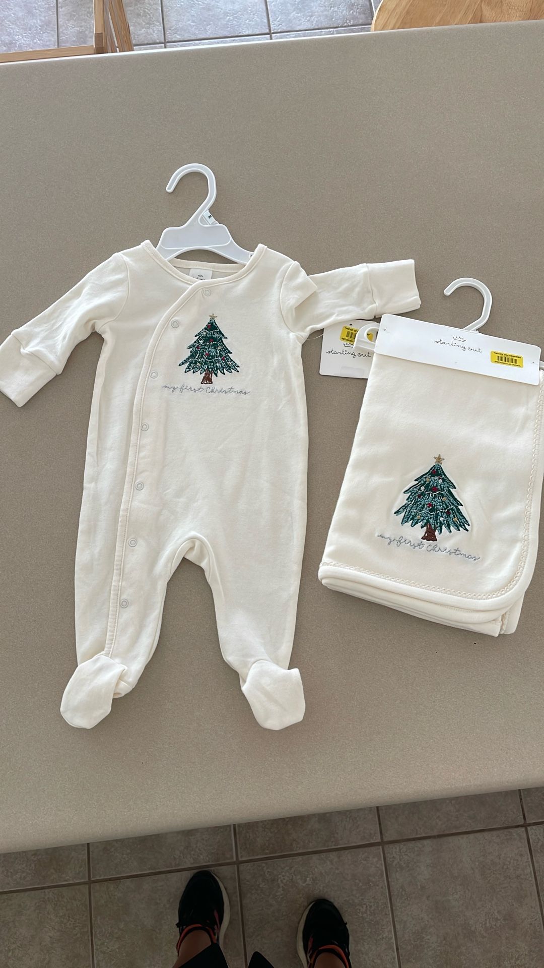 Infant Size 3 Month Boys/Girls Christmas Sleeper and Matching Blanket