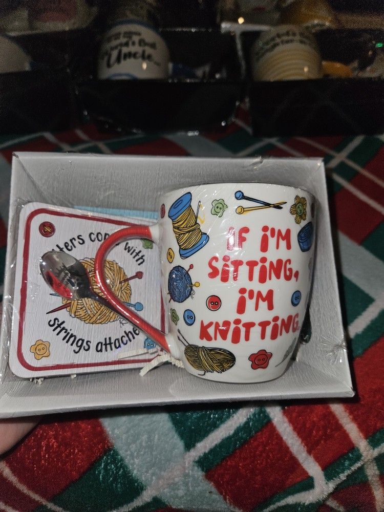 Knitting Gifts - Knitting Mug, Coaster and Engraved Teaspoon Gift Set - Funny Knitting Gift For Christmas and Birthday - 400ml Mug - Award Winning Gift Retailer